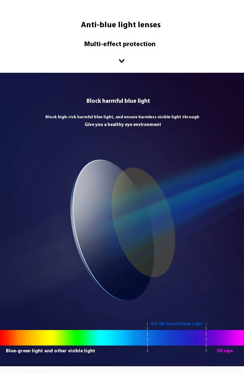 The Anti-blue Light Spectacle Frame features lenses designed to filter out harmful blue light emitted by digital screens. Prolonged exposure to blue light can cause eye strain, headaches, and disrupted sleep patterns. These glasses effectively reduce these symptoms, allowing you to work or play comfortably for longer periods. Whether you’re a professional working at a computer or a gamer enjoying your favorite video games, these glasses help shield your eyes from potential damage while ensuring clarity and comfort.