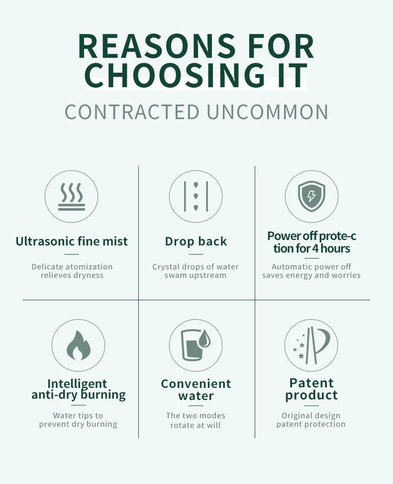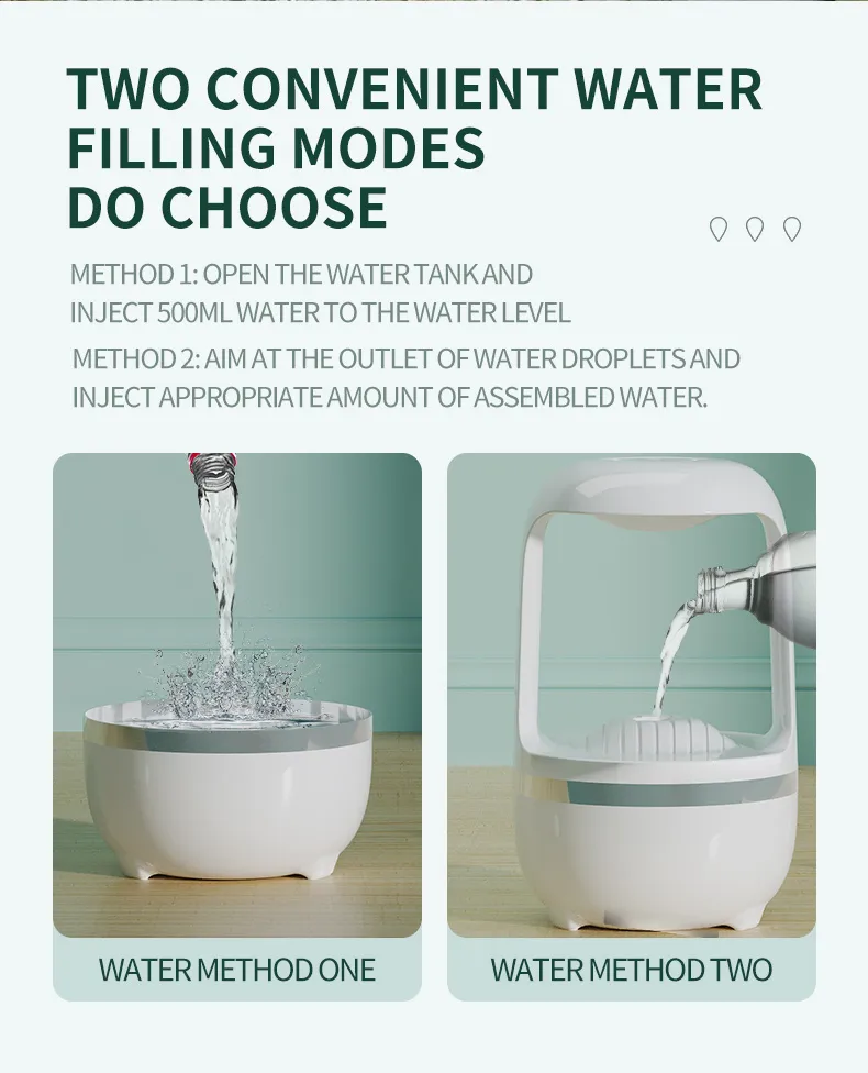 Backflow Design: The captivating water drop effect creates a soothing visual as mist gently cascades, adding a tranquil