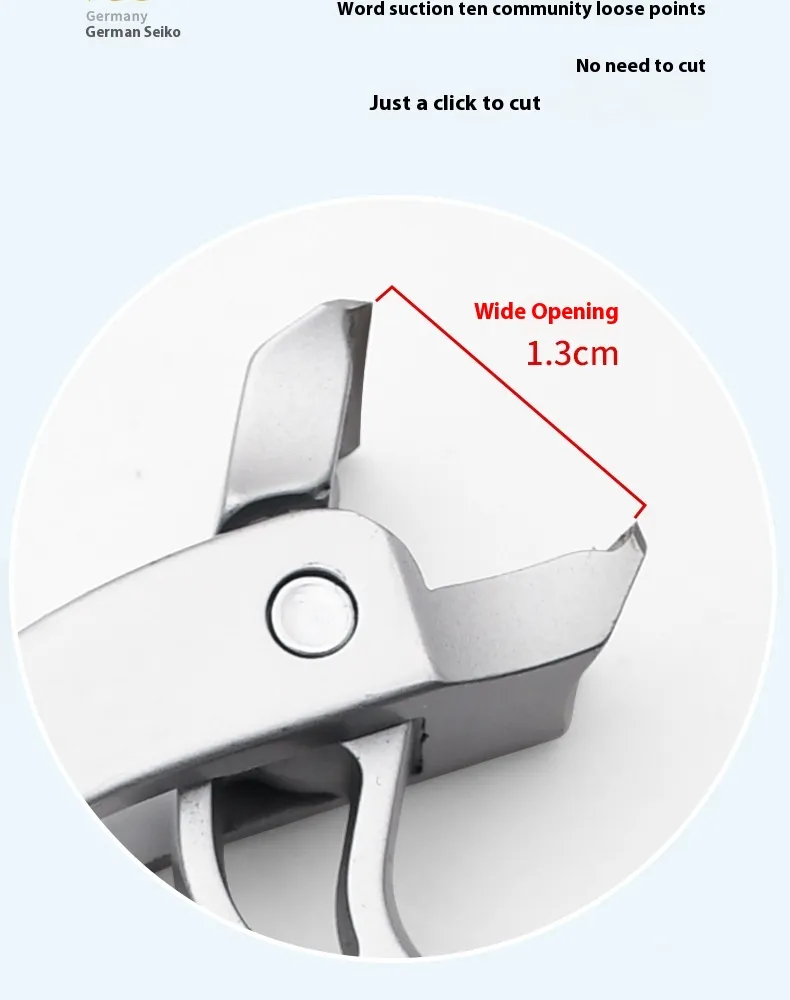 Thanks to the large opening, these clippers can accommodate thick nails, making them perfect for everyone—from those with naturally thick nails to individuals who may need a tool for tougher nail types. The wider opening ensures that you don’t have to struggle to trim nails.