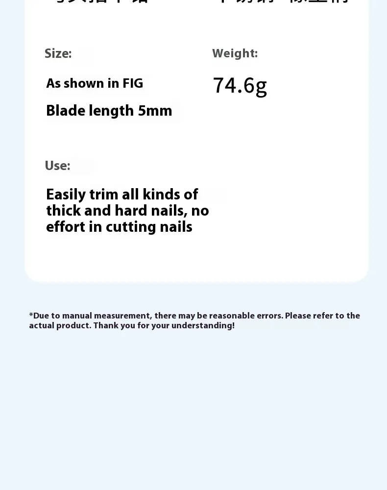 Perfect for Thick Nails: The large opening and strong cutting power make these clippers ideal for those with thick or tough