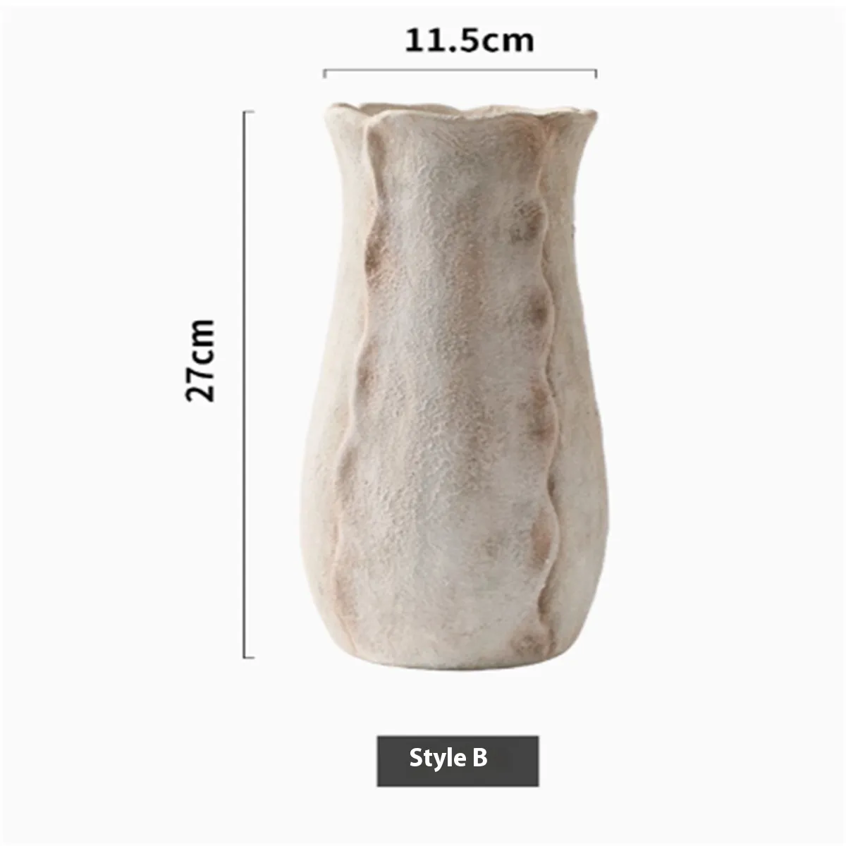 Wabi-sabi Aesthetic: The vase showcases the beauty of imperfection with its rustic, distressed finish, and asymmetrical