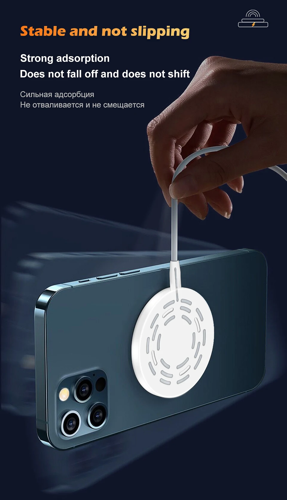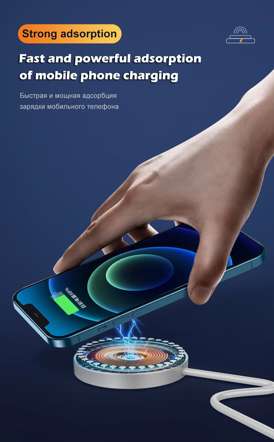 This Apple MagSafe wireless charger is designed for iPhone models 15, 14, 13, 12, 11 Pro Max, SE, Mini, X, XS, XR, and 8 Plus. It provides fast wireless charging and includes a Type-C Lightning cable for efficient power delivery, ensuring your devices are charged quickly and reliably.