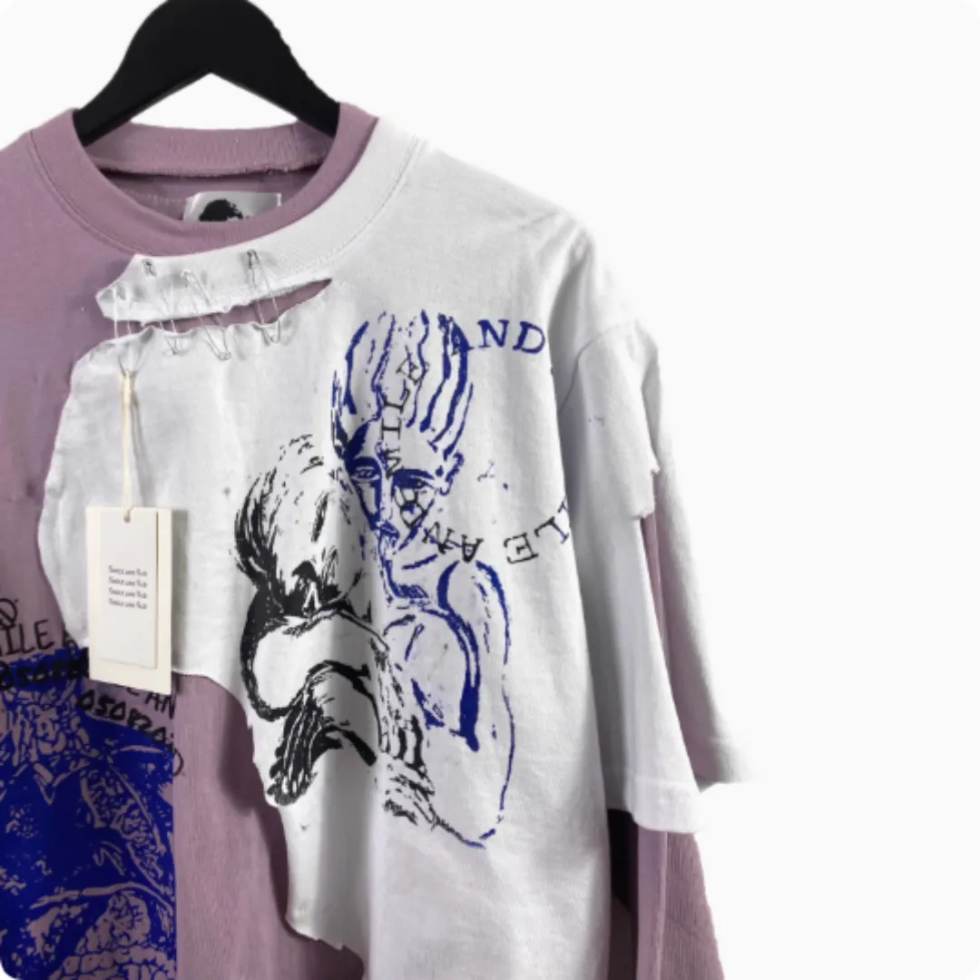 The Artistic Print with Two Pieces of Distressed Long Sleeves is the perfect blend of creativity, style, and comfort. This unique and bold design is crafted for fashion-forward individuals who want to make a statement with their wardrobe. Featuring distressed long sleeves and an eye-catching artistic print, this top offers a trendy, modern look with a touch of rugged charm. Ideal for casual outings, concerts, or adding a bit of edge to your everyday style, this top provides the perfect balance of fashionable flair and laid-back comfort.