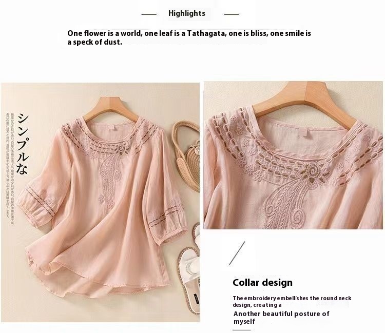 Artistic Vintage Cotton Linen Embroidered Shirt