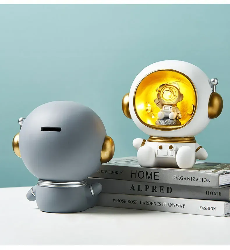 Astronaut Creative Night Light Piggy Bank Resin Decor Cute Character Model Nordic Home Decor Living Room Desk Decoration Gifts