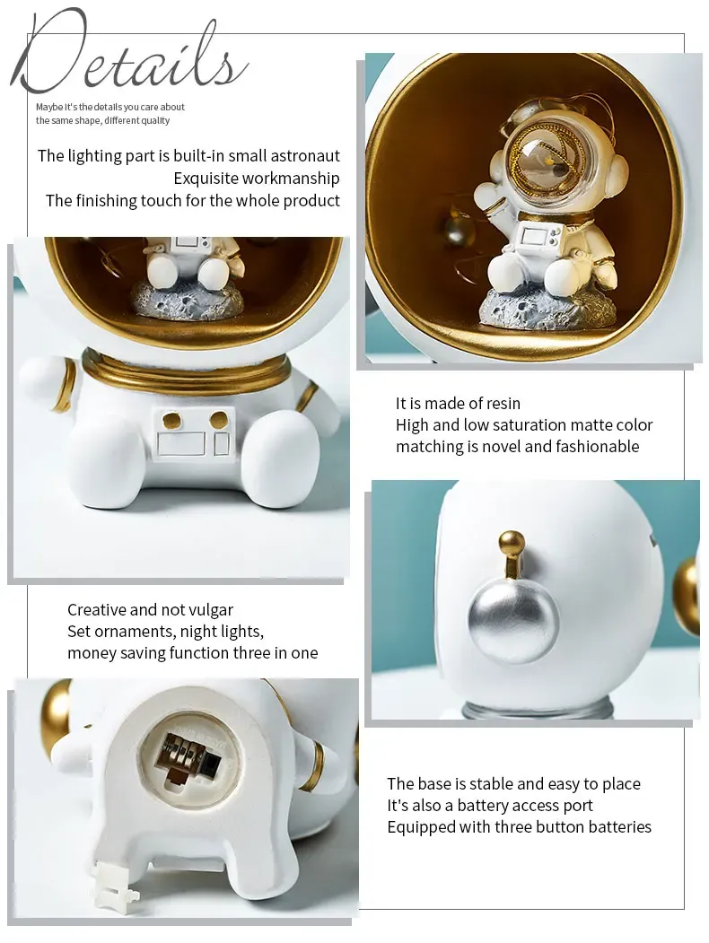 Astronaut Creative Night Light Piggy Bank Resin Decor Cute Character Model Nordic Home Decor Living Room Desk Decoration Gifts Product Description