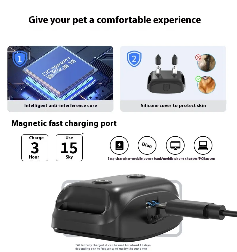 Automatic Voice Control: Detects barking and activates the device automatically, eliminating the need for manual control.
