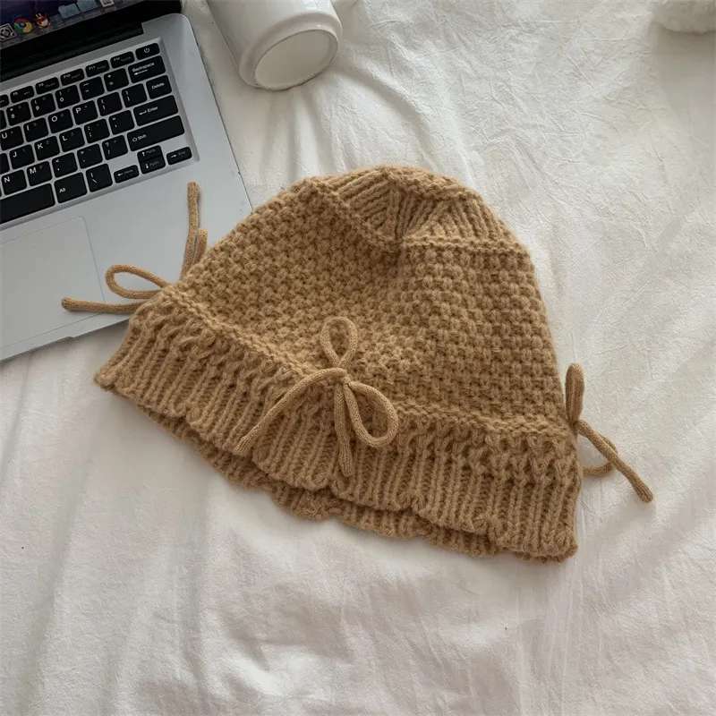Autumn And Winter Bow Knitted Fisherman Hat Wool Bucket