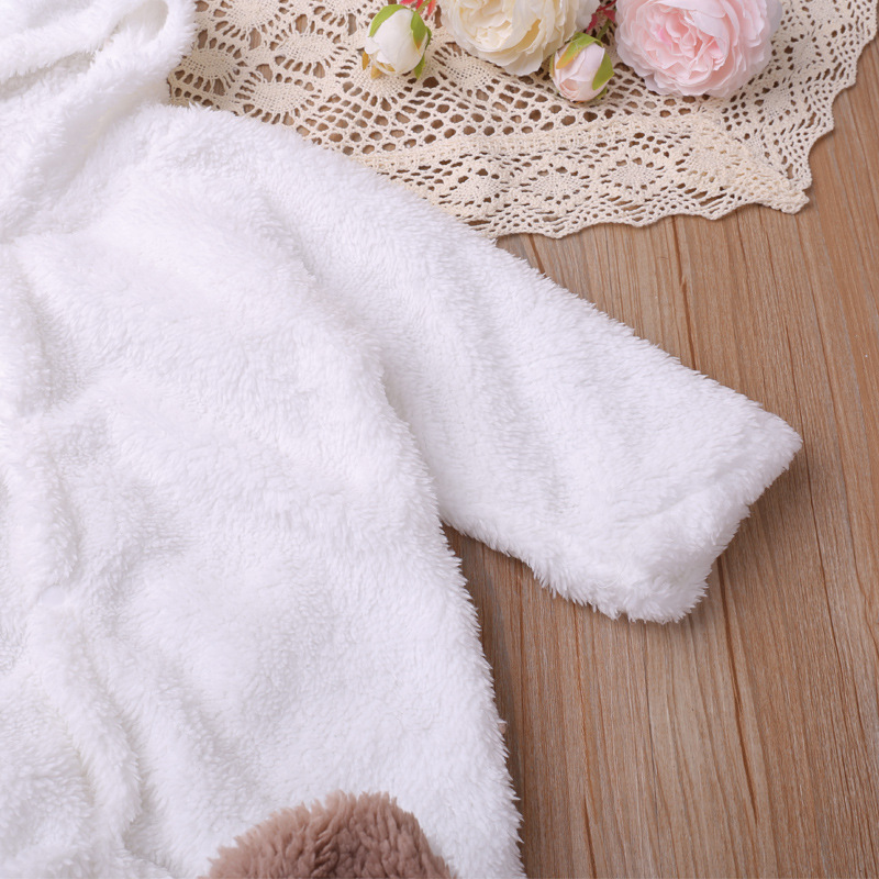 Autumn and Winter Coral Fleece Hood Long-sleeved Romper Toddler Cute Warm Jumpsuit