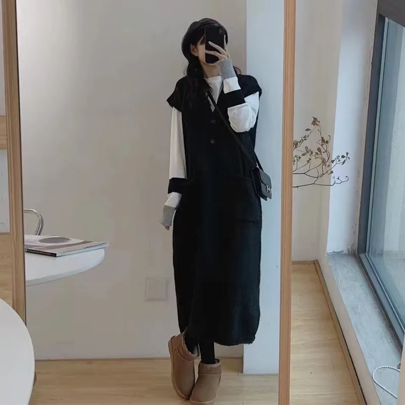 Autumn and Winter Loose Cold Wind Sweater and Sleeveless Dress