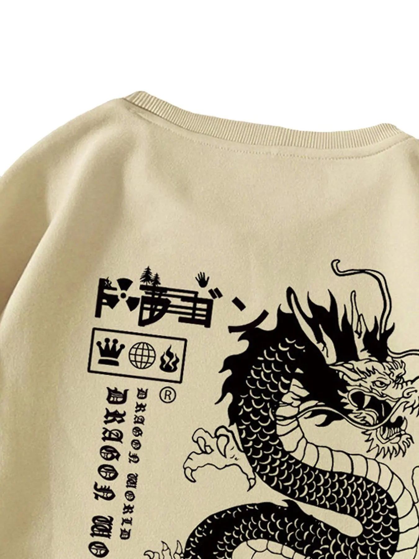 Autumn And Winter Loose Tokyo Dragon Print Crewneck