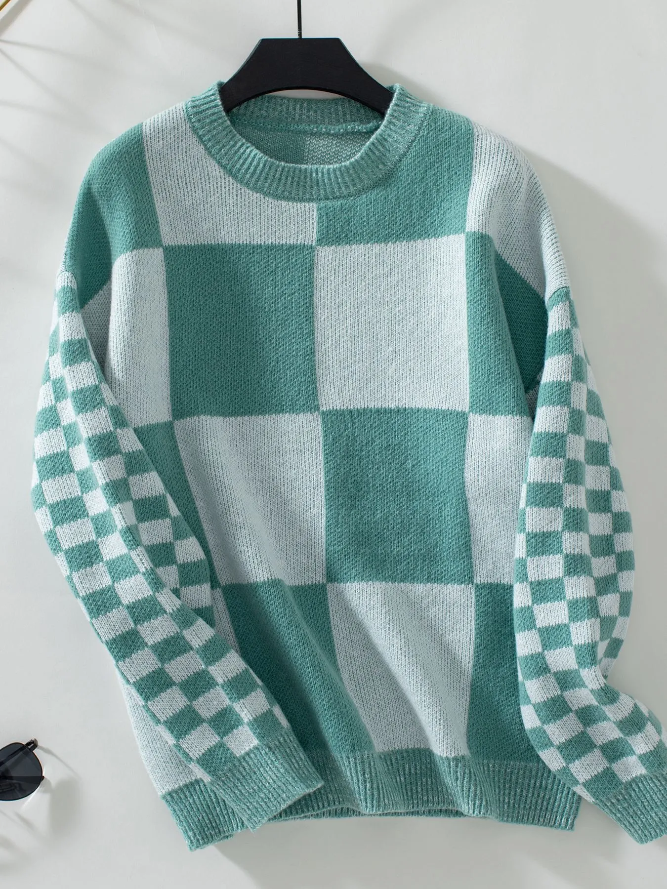 Autumn New Personality Slim Fit Color Matching Plaid Knitted Sweater