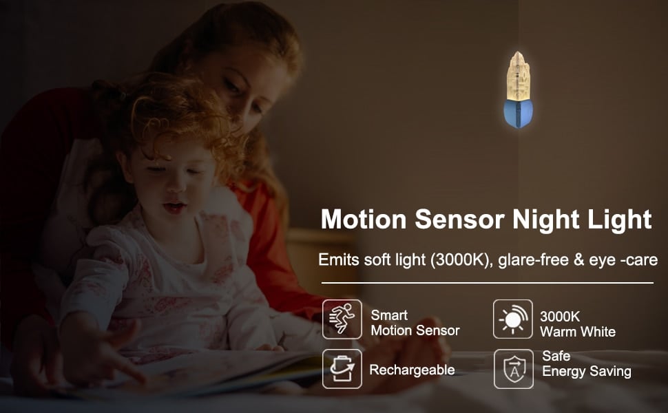 Superior motion sensor night light will automatically activate with motion detected within a range of 10ft and turn off after 30 seconds of no motion detected, which is energy-saving. You can also press the button to keep it lighting on with constant light.