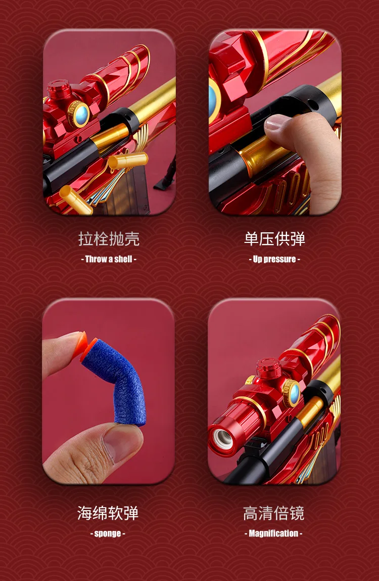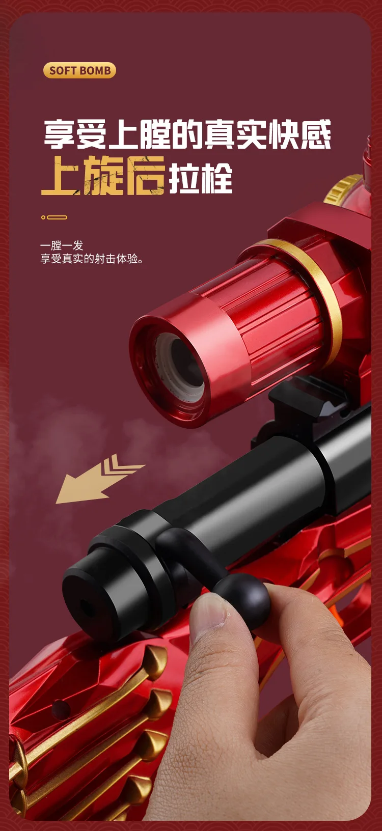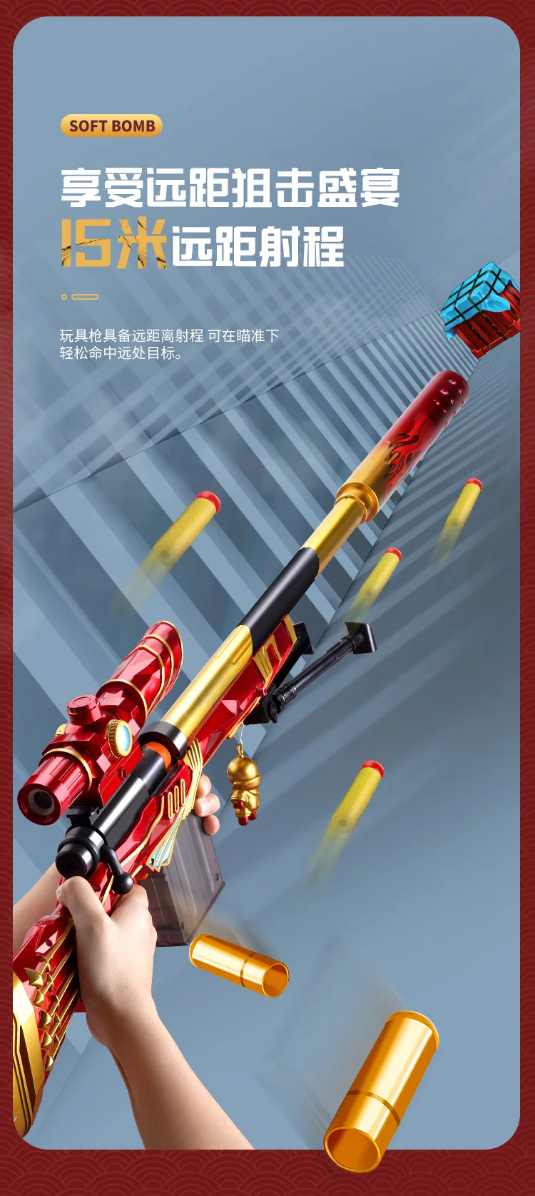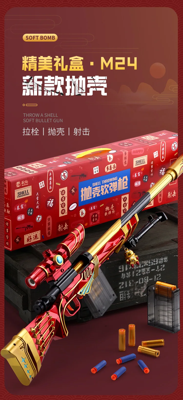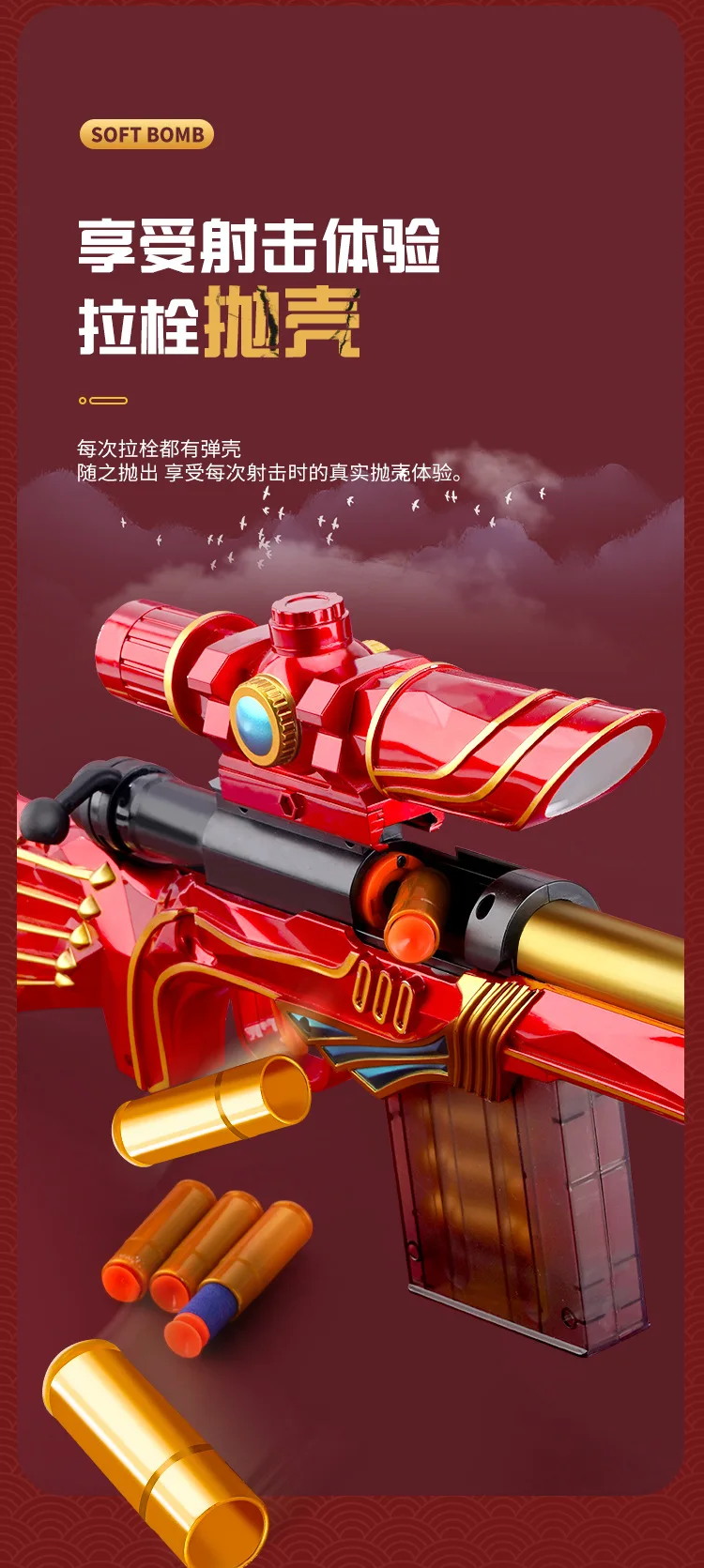 Featuring a manual firing mechanism and soft bullet ejection, this toy gun replicates the real-world sniper rifles used in games and action movies, making it a perfect choice for role-playing, action games, or simply adding a cool toy to a collection. Made with safe materials for kids, this AWM 98k M416 is a fun and educational way for children to engage in active play.