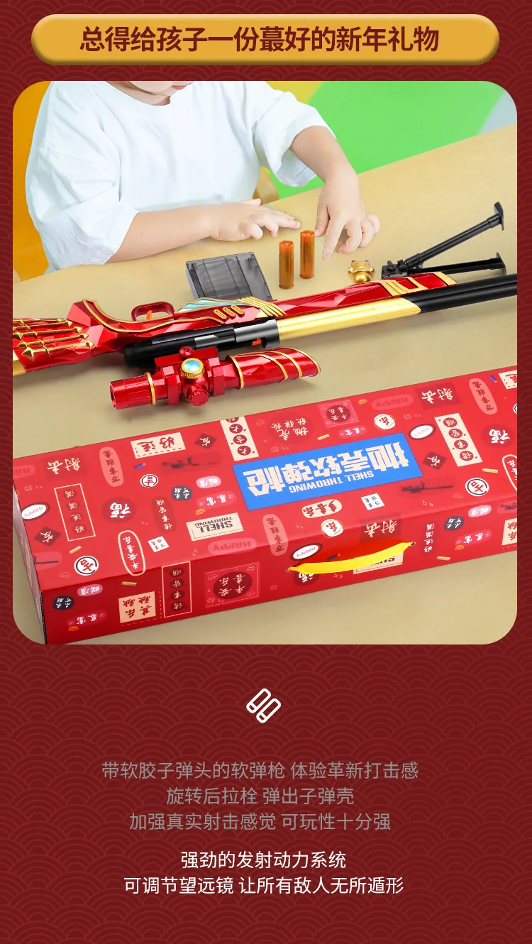 Made from high-quality plastic, this toy sniper rifle is designed to withstand rough play and last for years. The lightweight and ergonomically designed body ensures a comfortable grip for children, while the shell ejection mechanism works smoothly and reliably, making it easy to load and fire.