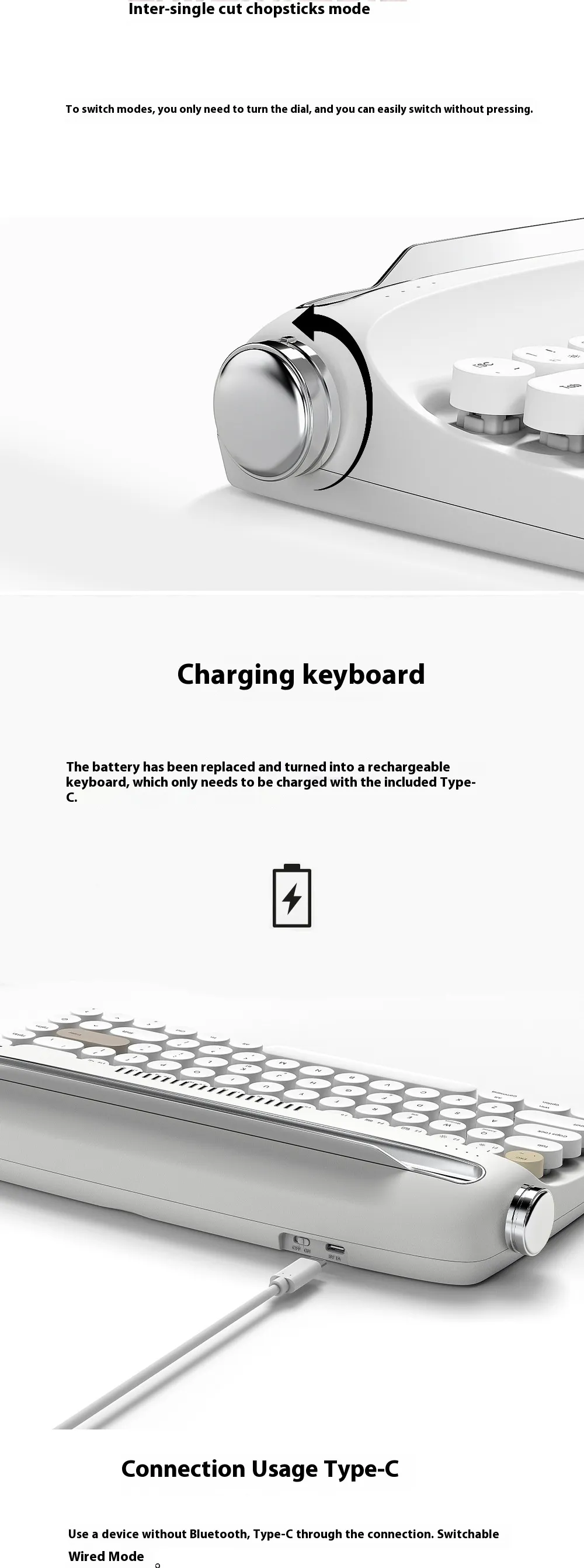 The B307 Rechargeable Retro Bluetooth Wireless Keyboard is the perfect choice for anyone who values both style and functionality. Its unique, typewriter-inspired design brings a touch of nostalgia to your workspace, while its modern features like Bluetooth connectivity, rechargeable battery, and multi-device compatibility provide all the convenience you need in today’s tech-driven world. Whether you're a writer, student, professional, or simply someone who loves the vintage aesthetic, the B307 is designed to offer a comfortable and stylish typing experience for all.
