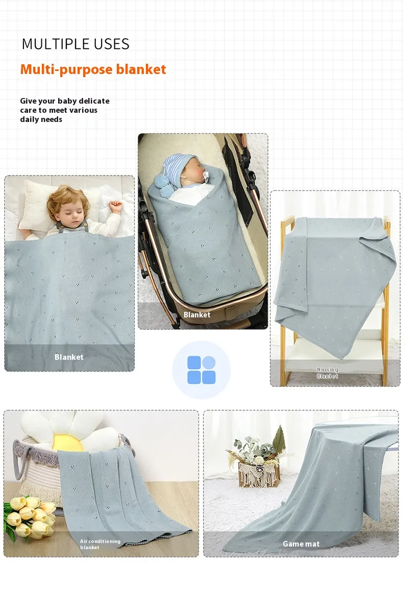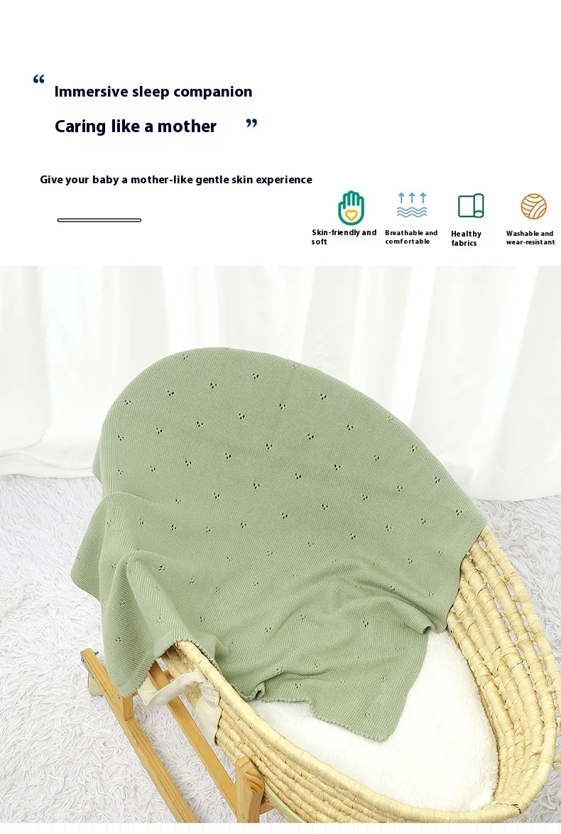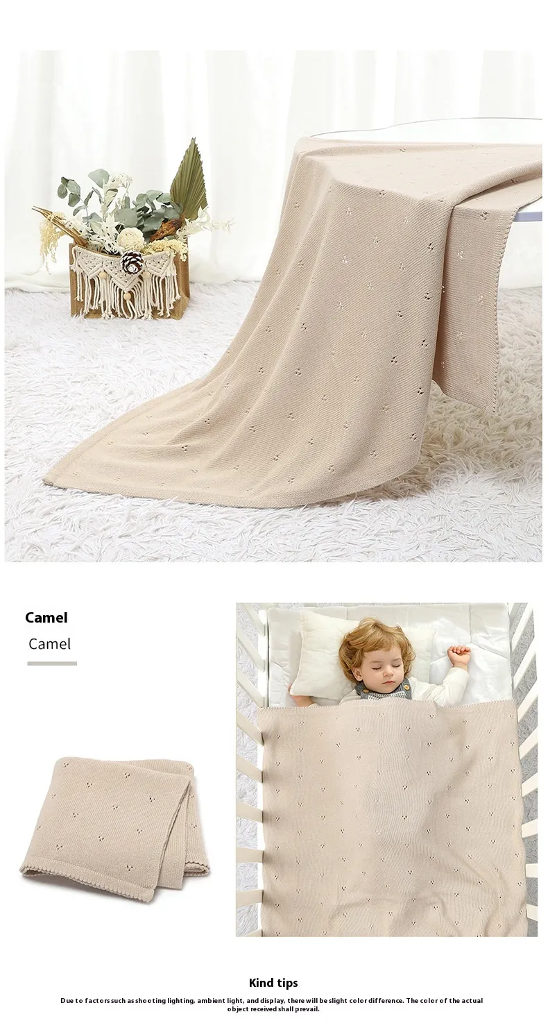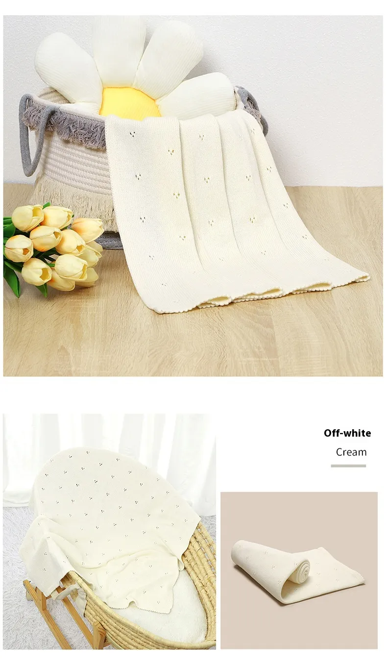 Baby Boys' and Girls' Knitted Solid Color Hollow-out Dot Quilt: Comfort and Style for Your Little One