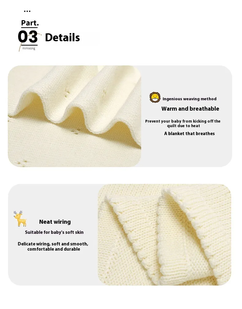 With its neutral yet stylish design, the Baby Boys' and Girls' Knitted Solid Color Hollow-out Dot Quilt is perfect for any baby. Its unisex appeal makes it a great choice for families who want a versatile bedding option that can grow with their child. The quilt’s soft, knitted fabric is ideal for babies, ensuring that they feel both secure and relaxed in their sleep environment.