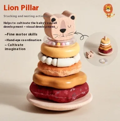 The Baby Early Education Puzzle Lion Set Column Toy Wooden helps babies develop essential fine motor skills. As they manipulate the stackable columns and fit them onto the toy, they strengthen their hand muscles and improve dexterity. The action of stacking pieces also aids in the development of hand-eye coordination and concentration, which are crucial for future learning and play.