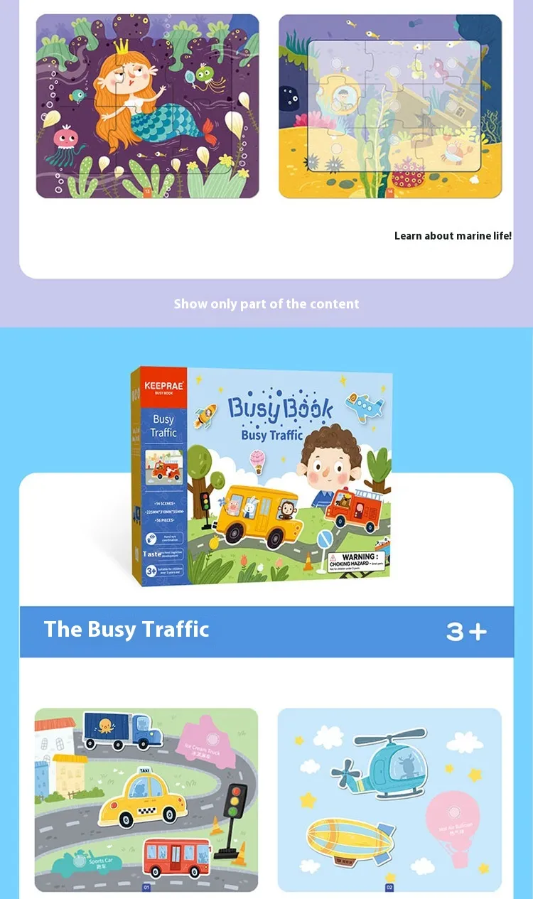 Each page of this quiet book is thoughtfully crafted with hands-on activities that encourage exploration and problem-solving. Babies can touch, pull, flip, and interact with colorful elements to enhance their learning experience.