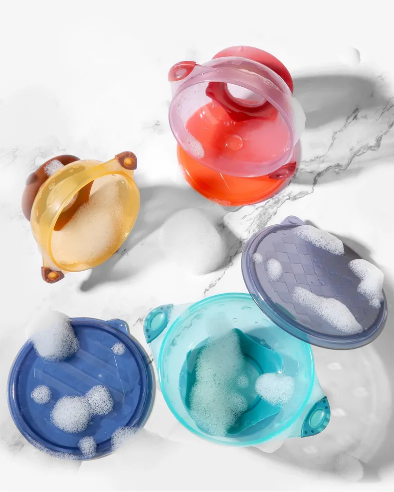 The set includes suction bowls that securely attach to highchair trays or tables, preventing spills and messy mealtimes. This ensures a hassle-free feeding experience for both parents and babies.