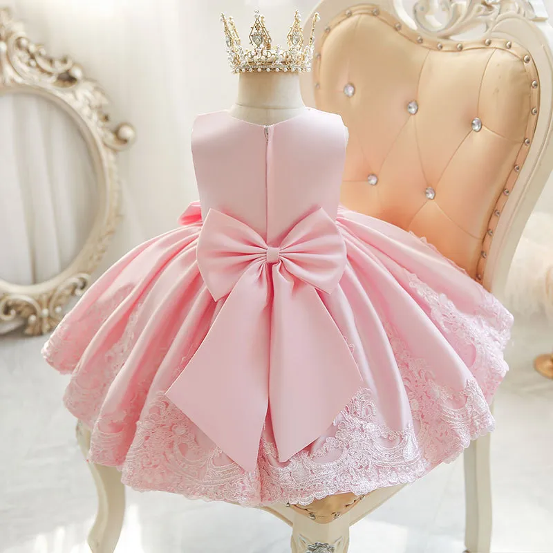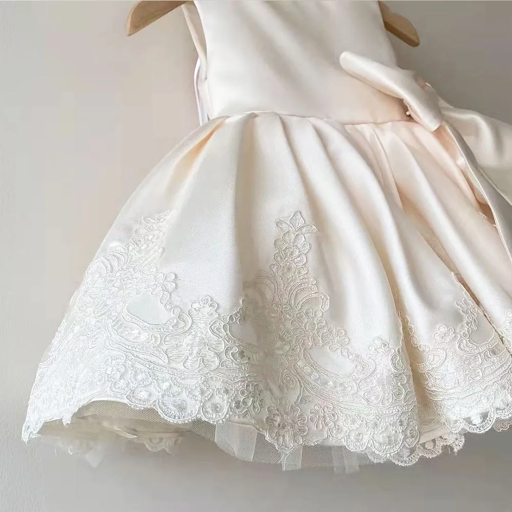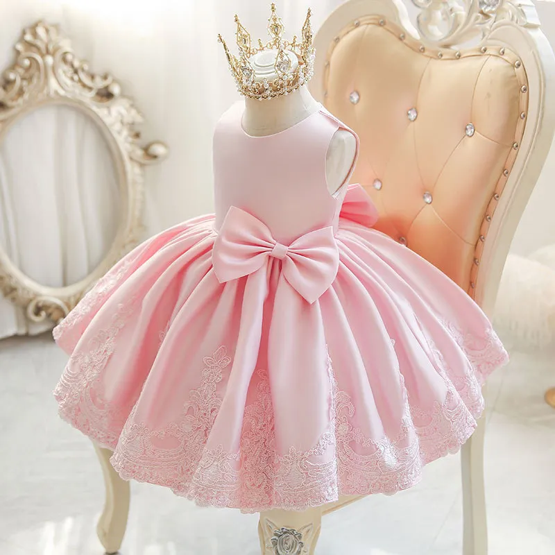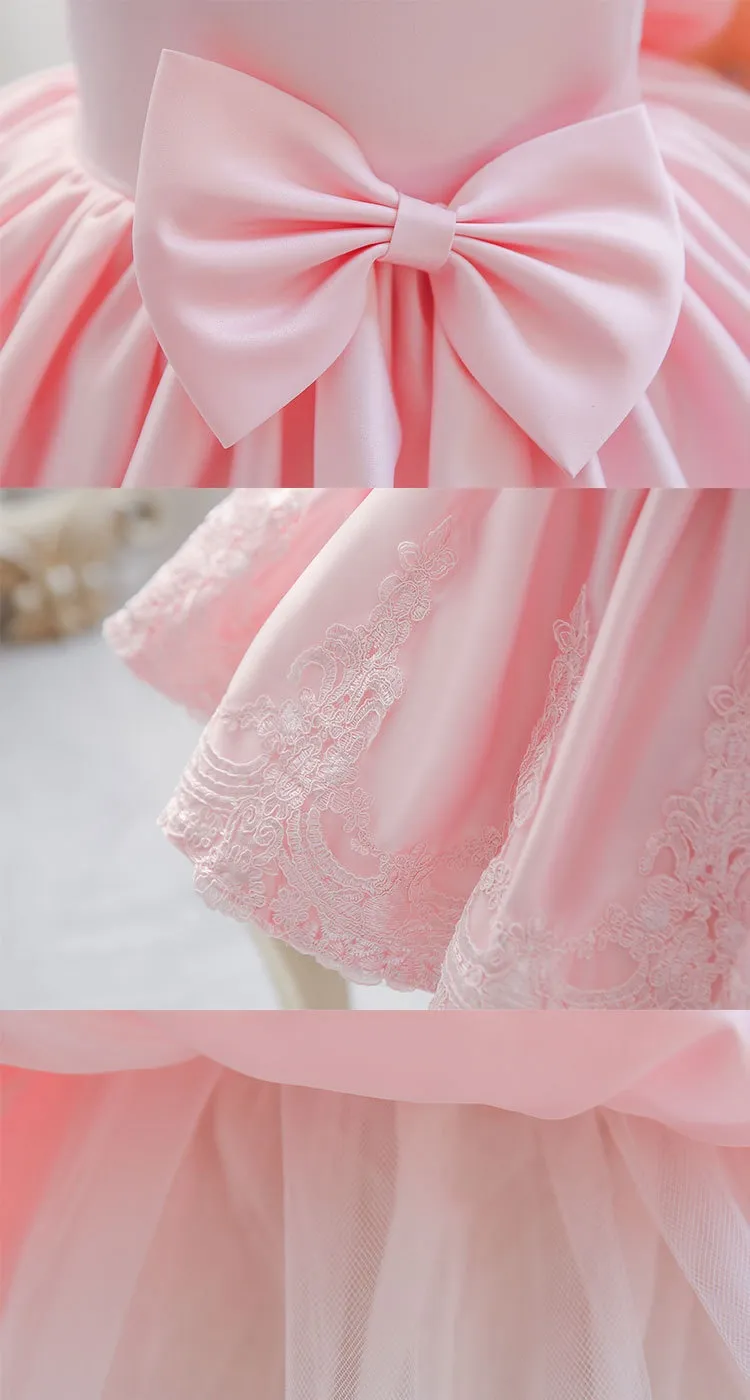 Crafted from high-quality materials, this dress is designed with soft fabric to ensure maximum comfort while still looking stunning. The exquisite details, including delicate lace, tulle, and ribbon accents, create a sophisticated, timeless look. Whether your little one is celebrating her first birthday or participating in a wedding, this dress will add a touch of charm and elegance to her day.