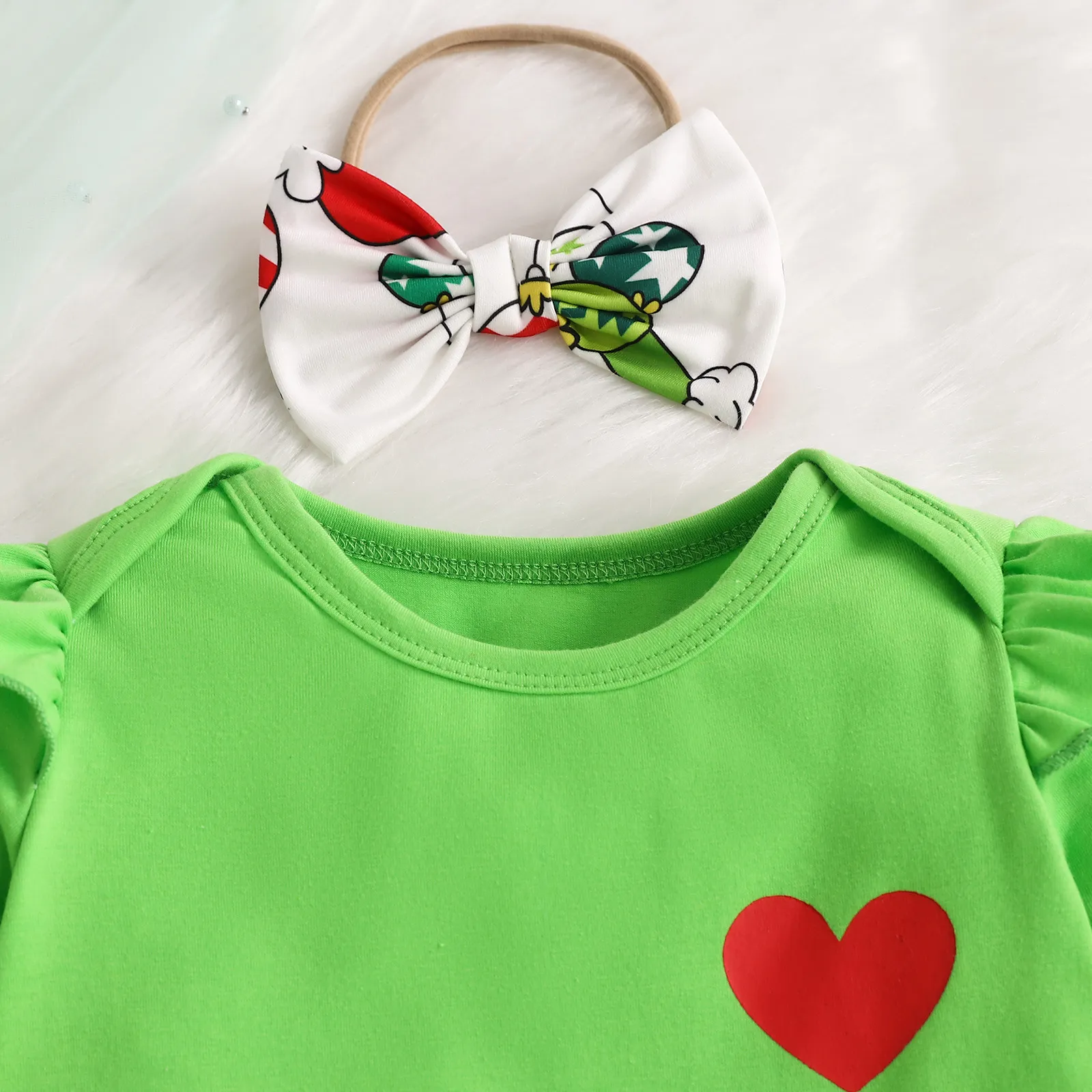 Baby Girl's New Green Fur Strange Printed Skirt Suit