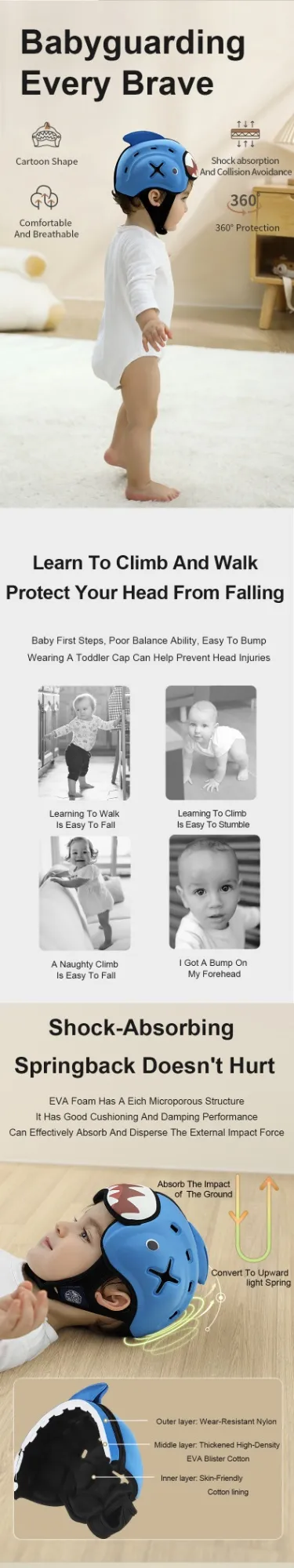cushioning against falls and bumps. It helps protect your baby’s delicate head from injuries while they learn to walk or play.