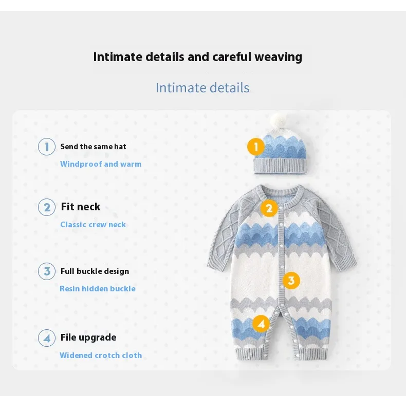 Baby Hooded Long-sleeved Knitted Cotton Jumpsuit Hat Suit