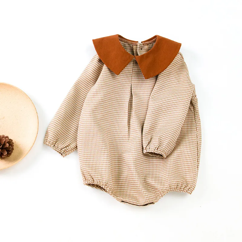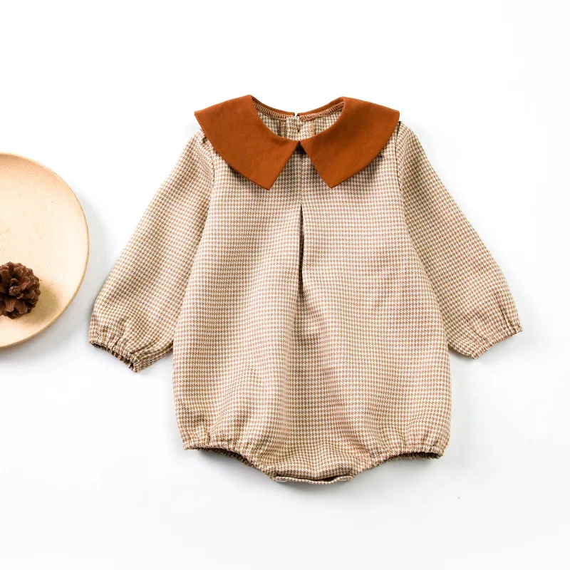 Key Features of Baby Houndstooth Long-sleeve Jumpsuit Crawling Suit