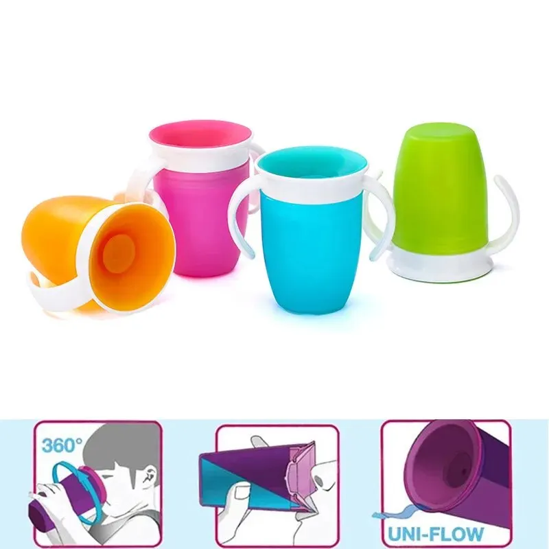 The leakproof design of this drinking cup ensures that liquids are securely contained, preventing spills and messes. The 360-degree rotatable flip lid is specially designed to allow babies to drink from any part of the rim without spilling. This feature is perfect for busy parents who want a convenient solution to their baby's drinking needs without worrying about leaks or stains.
