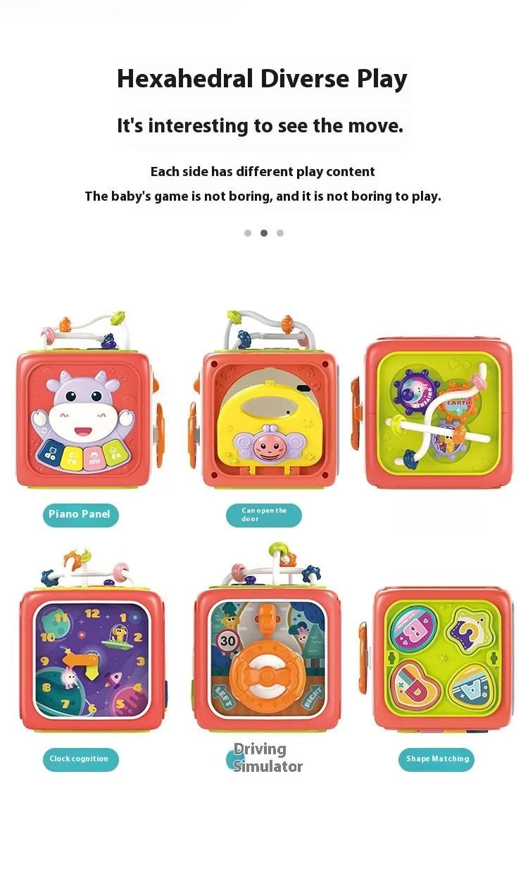 This toy combines music, lights, and hands-on activities in one compact design, offering endless entertainment for your baby. Each side of the hexahedron features unique interactive elements to keep your child engaged.
