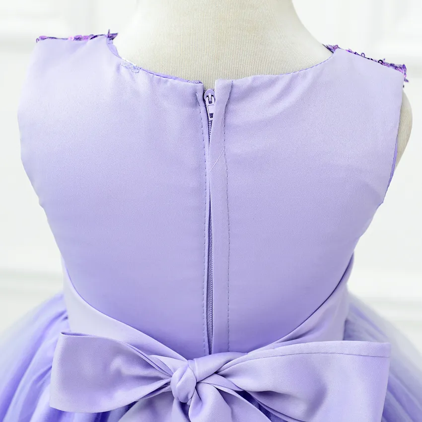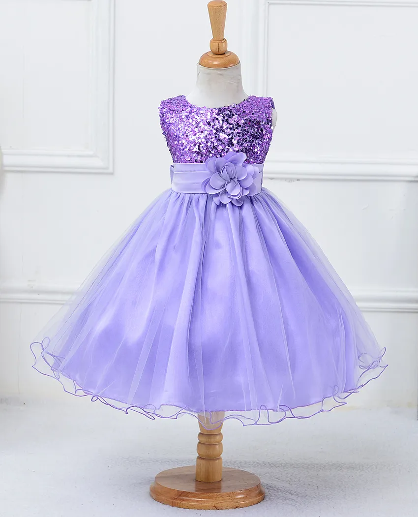 flower girls, weddings, and other formal occasions, offering a sparkling look that enhances the magic of any event. The dress features a