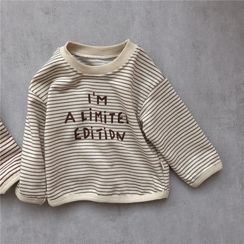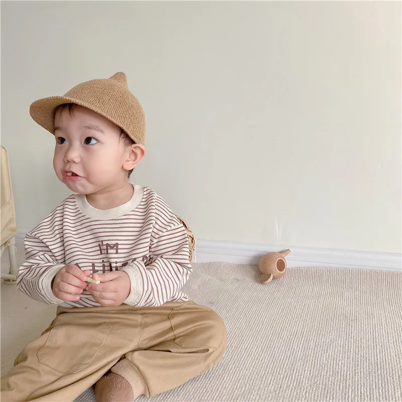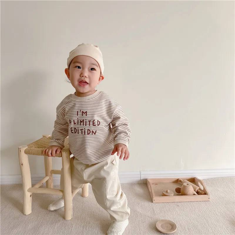 Baby suit Korean version spring new baby alphabet striped T-shirt patch casual pants baby two-piece suit