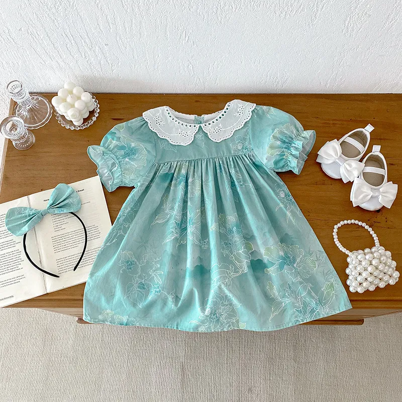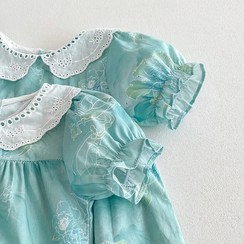 Key Features of the Baby Triangle Rompers Girl Puff Sleeve Dress