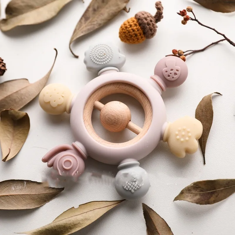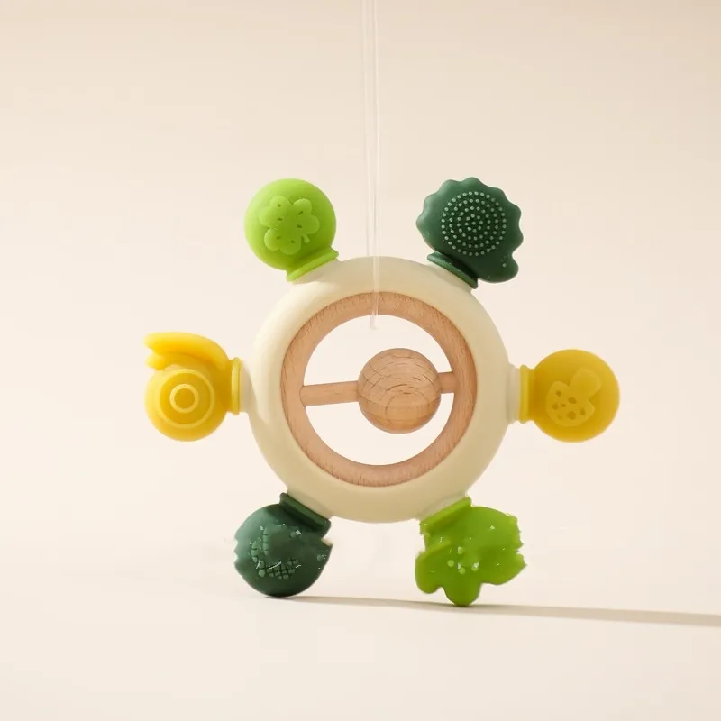 One common habit that many babies develop during teething is hand sucking. While this can bring temporary comfort, it can also lead to hygiene issues and a prolonged dependency on sucking. The Baby's Molars Prevent Hand Sucking Silicone Yaoyaole Tableware Soothing Rattle Toy helps to gently prevent this habit. The rattle and soothing texture encourage babies to hold and play with the toy, which provides a healthier alternative to sucking on their fingers or hands.