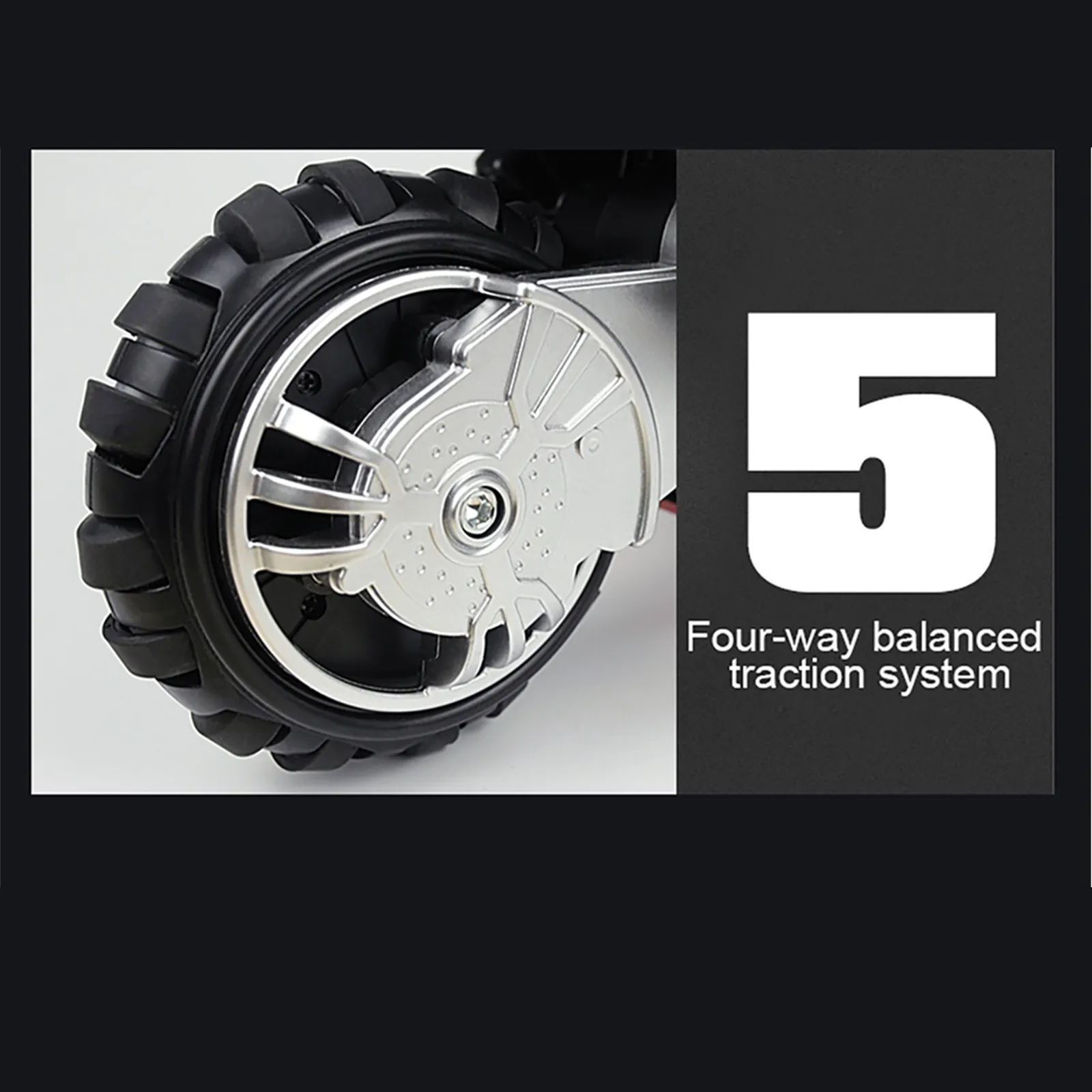 balance, 360-degree drift, stunt single-wheel standing and other functions. The traction control of the rear rubber balance wheel can be