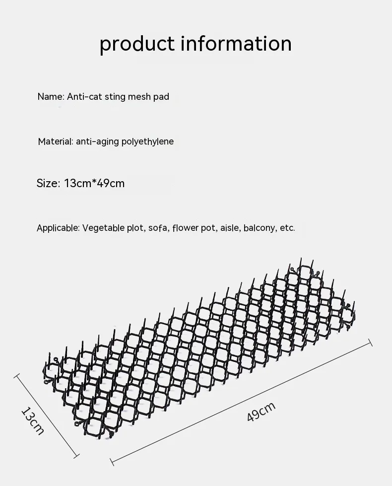 Ensure a pet-friendly, safe, and damage-free environment with the Balcony Cat Proof Household Animal Repellent Mat. This innovative mat is designed to keep cats and other animals away from your balcony, garden, or any indoor spaces, preventing them from scratching, climbing, or causing damage. With a simple, humane, and effective design, this mat provides a non-toxic solution to safeguard your furniture, plants, and outdoor areas from unwanted pet activity.