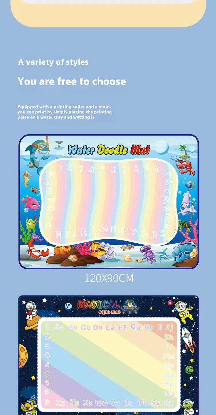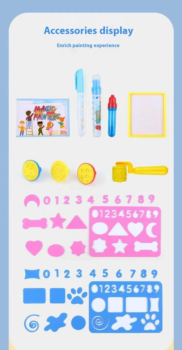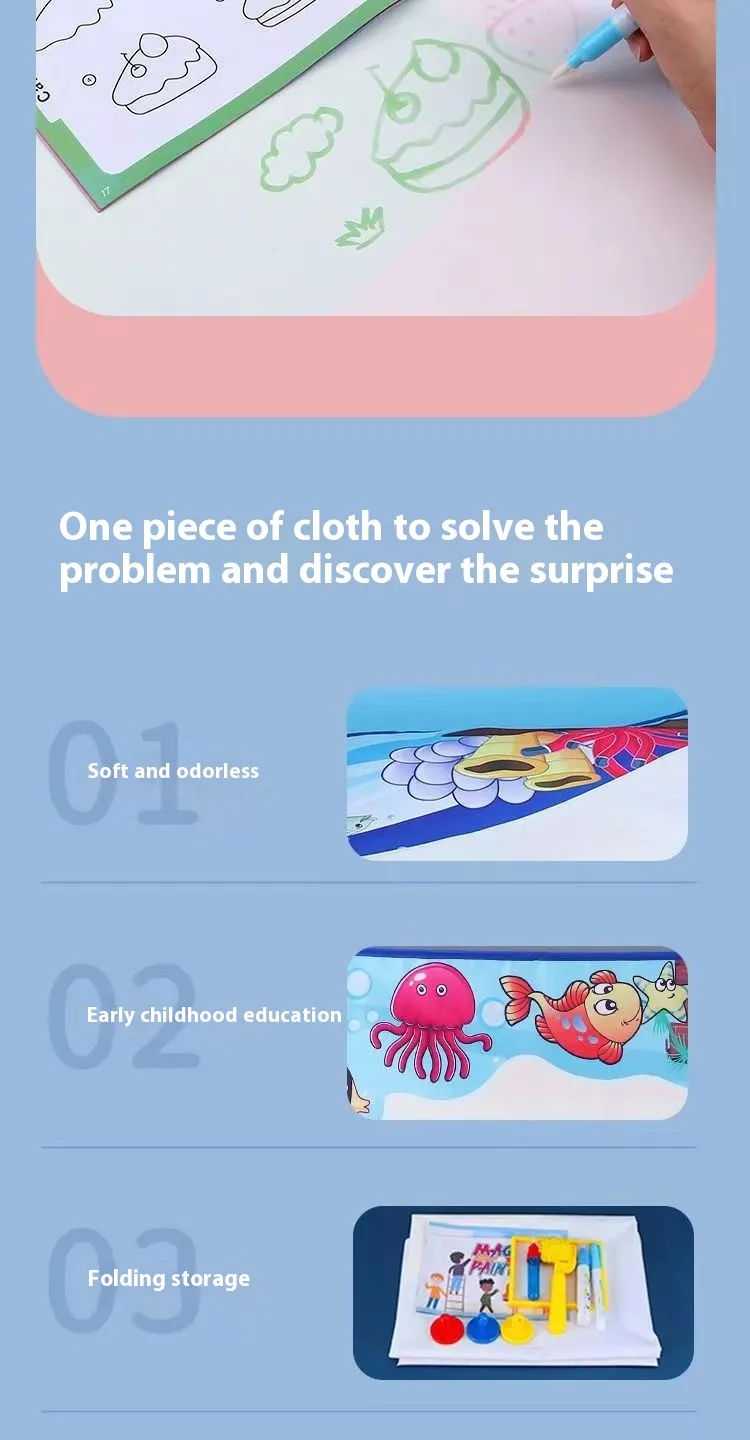 The coloring book is filled with engaging patterns and themes that cater to various interests, from animals to landscapes, ensuring there’s something for every child. The reusable painting mat offers a unique, eco-friendly feature that allows kids to erase and redo their artwork as many times as they like, reducing paper waste and making it ideal for endless practice. Both the coloring book and mat are made from child-safe materials, so parents can feel confident in their child's creative playtime. This set is also compact and easy to store, making it convenient for families on the go or as a tidy solution for busy homes.