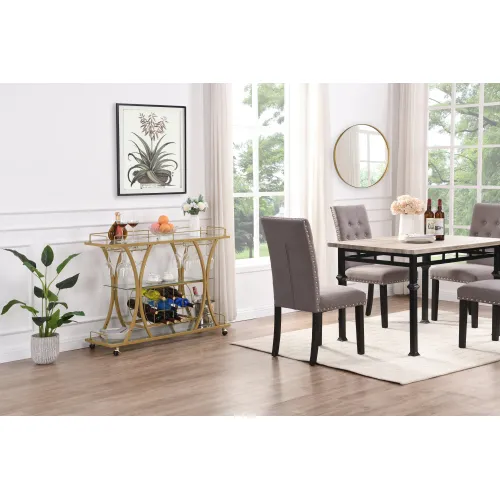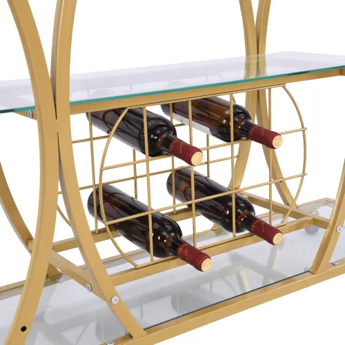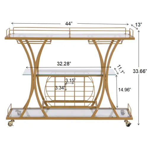 Product Name:Golden Bar Cart with Wine Rack Tempered Glass Metal Frame Wine Storage