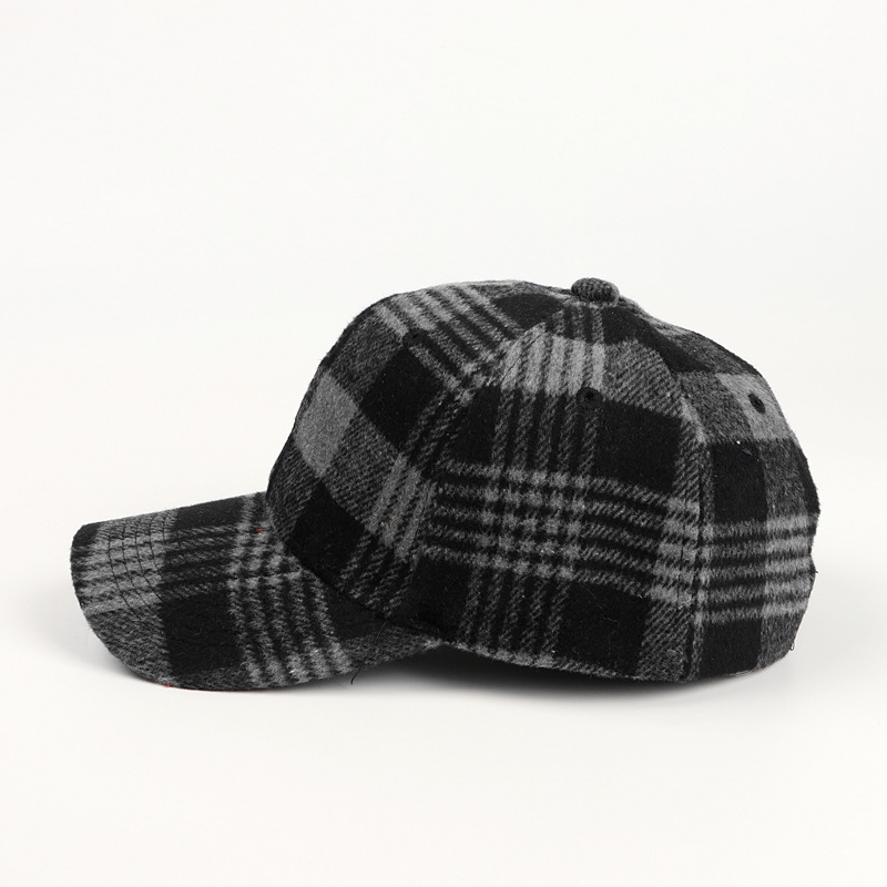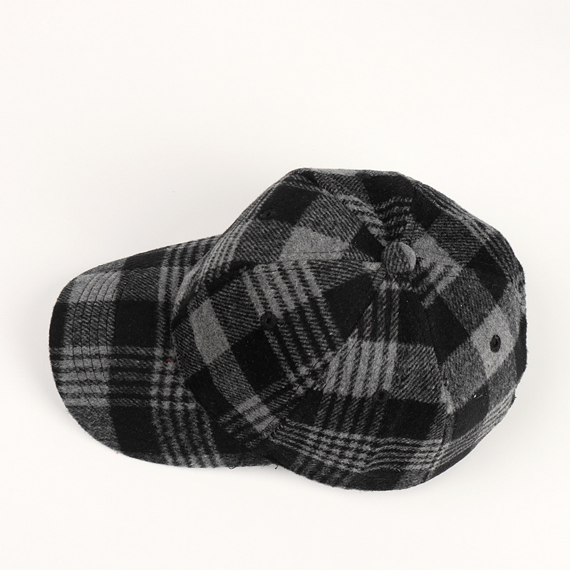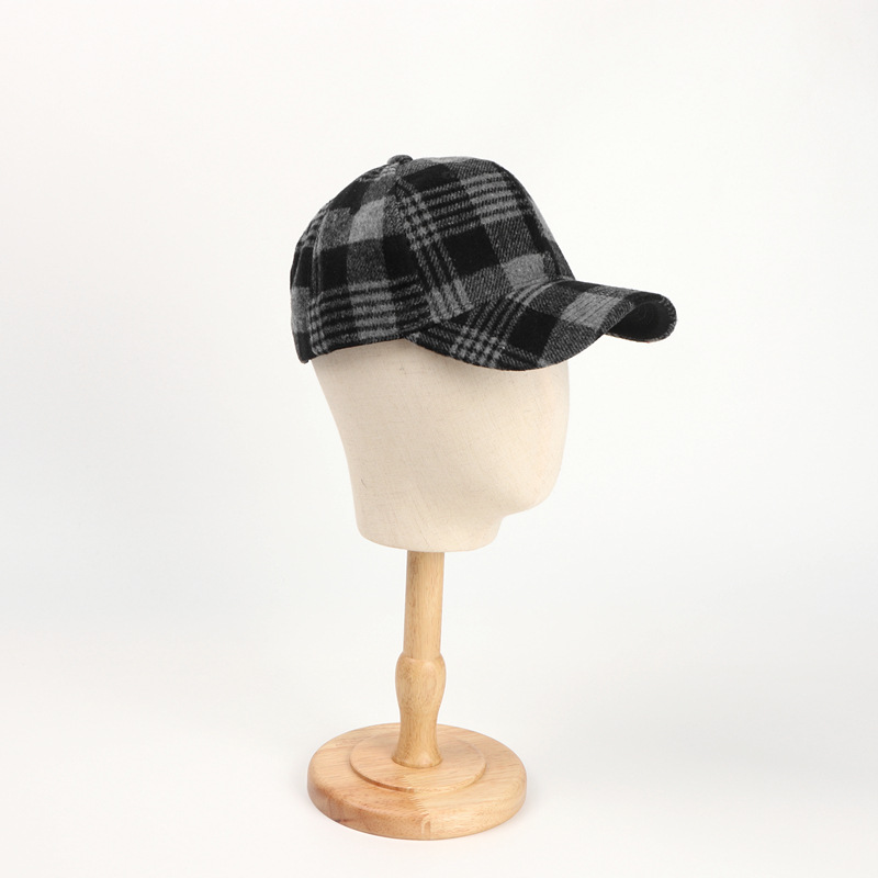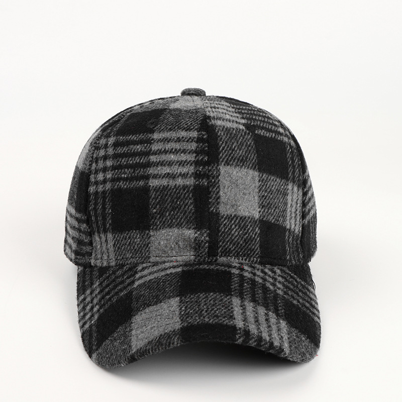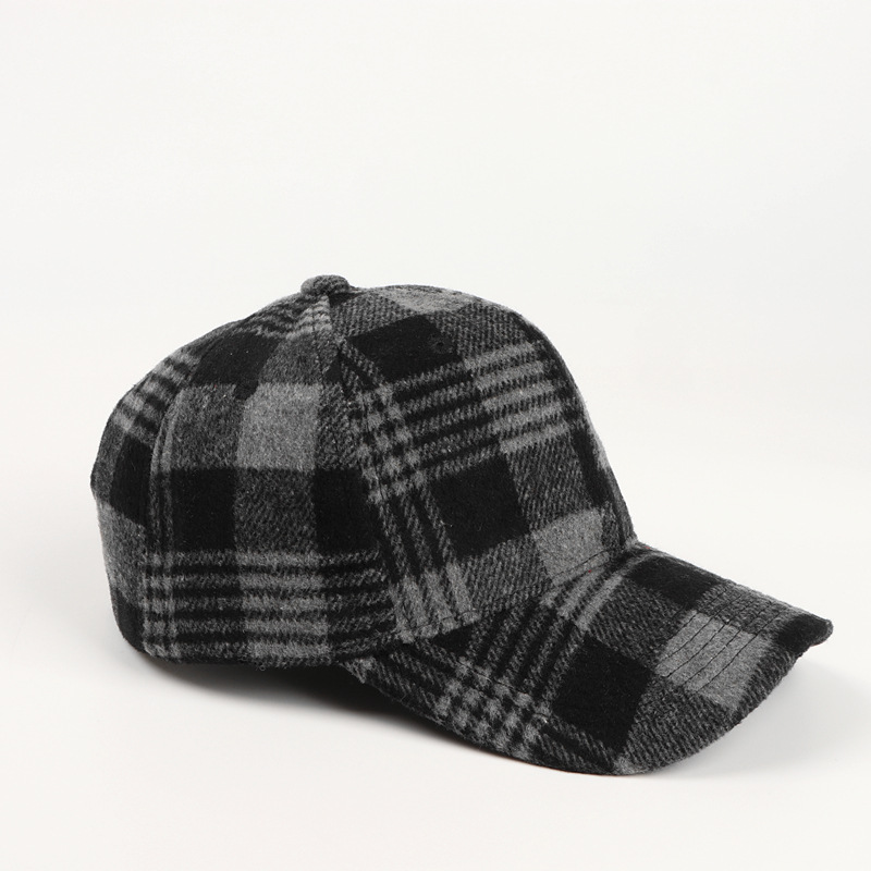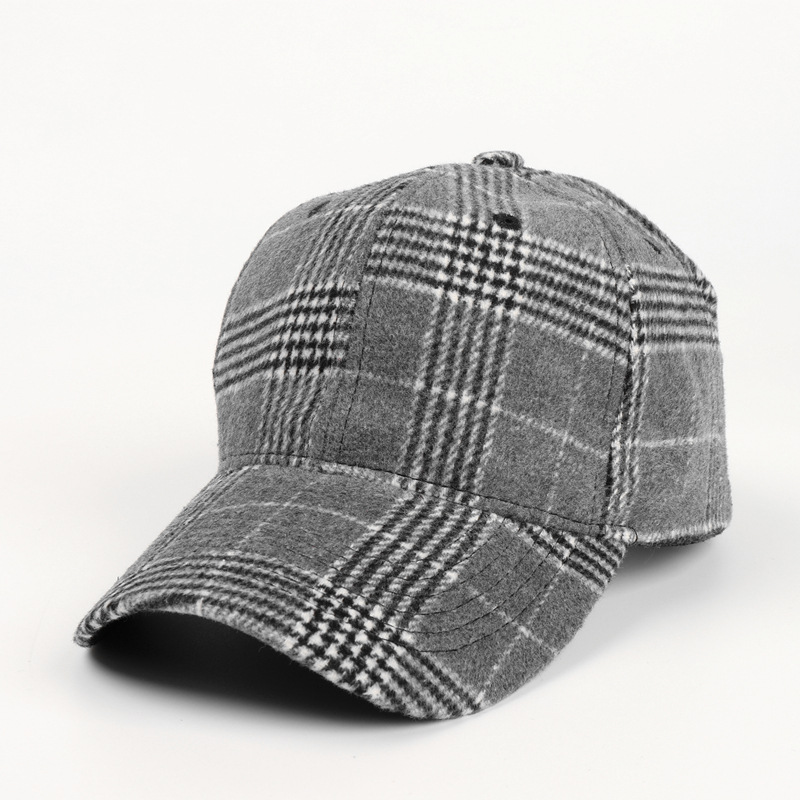 Baseball Cap Female Plaid Woolen Hard Top Peak Cap