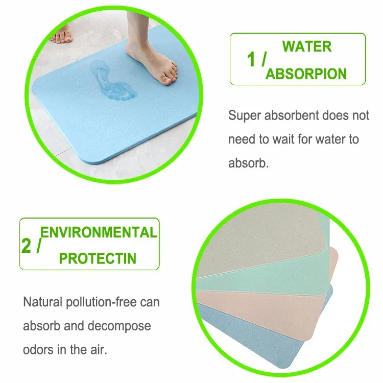 DIATOMITE BATH MAT is made of the diatomaceous earth from Mount Baitou, which has super water absorption, antibacterial deodorization, and