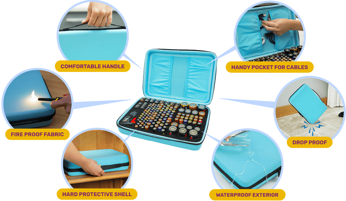 Battery Buddy XL is indestructible, lightweight, compact, waterproof & fire proof.