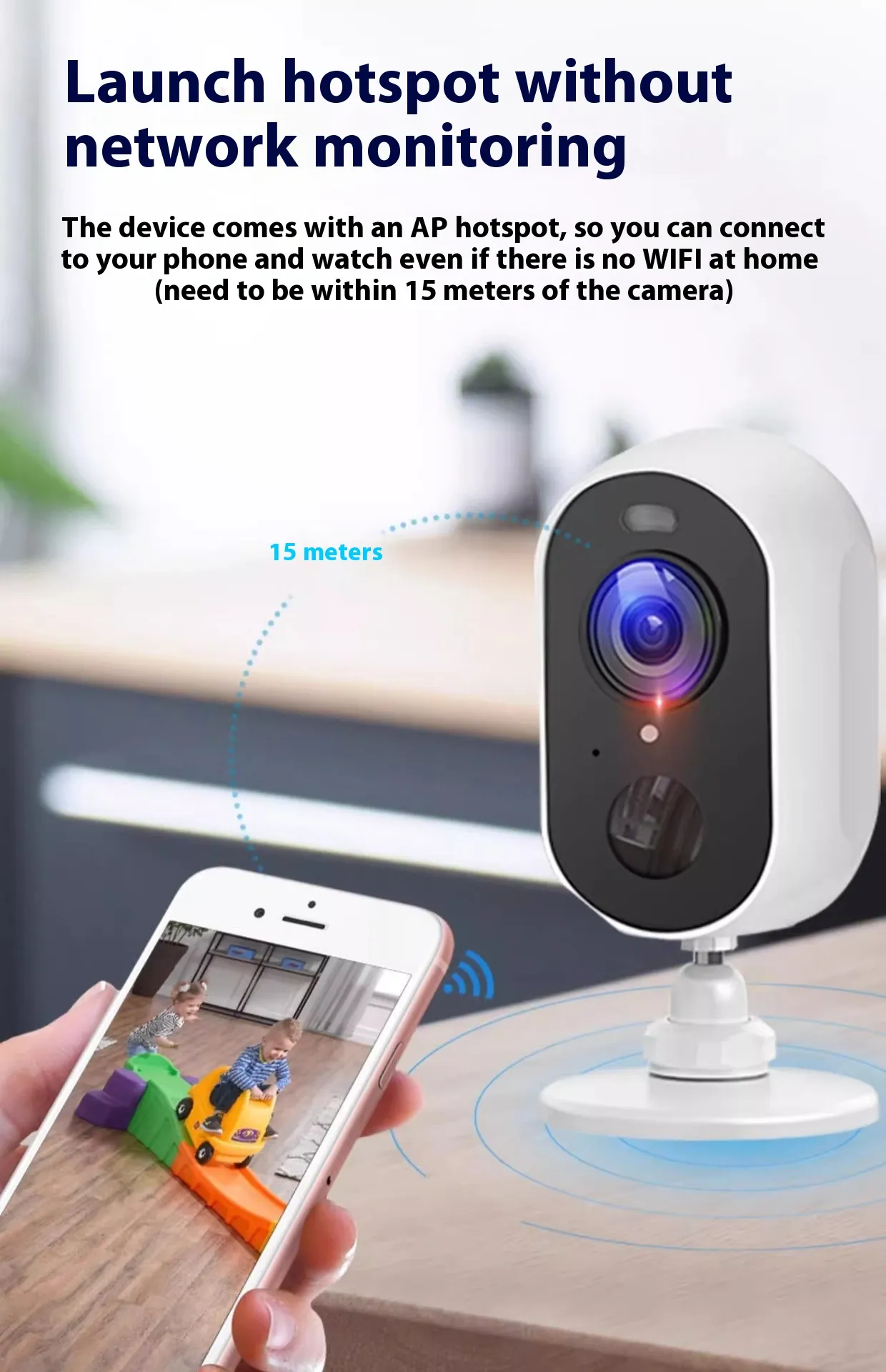 Battery Surveillance Camera Wireless Wifi Connection Mobile Phone Remote Plug-in Punch-free