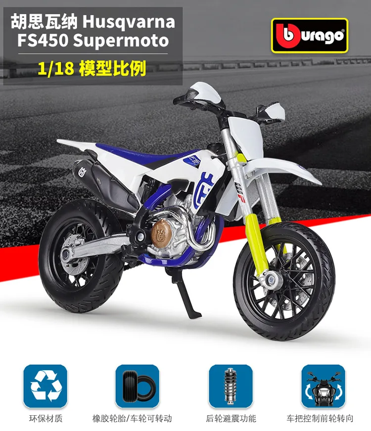 Bburago 1:18 Husqvarna FS450 Supermoto Model Car Diecast Alloy Motorcycle Toy