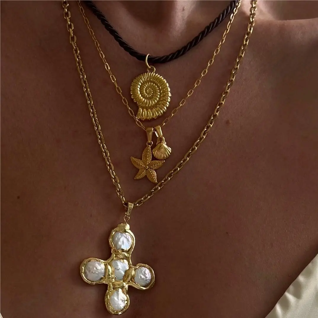 The conch shell is a central feature of this necklace, representing the beauty and serenity of the ocean. Conch shells are often seen as symbols of peace, protection, and the rhythm of the sea, making them a perfect design element for a beach-inspired accessory. The intricate detailing of the conch adds texture and visual interest, making it a striking focal point of the necklace.The natural beauty of the conch design evokes memories of beach vacations, with the soft, swirled shape and elegant curves symbolizing the calming influence of the ocean. Whether you're a beach lover or simply appreciate the natural world, the conch shell design will remind you of the beauty and tranquility of the sea.