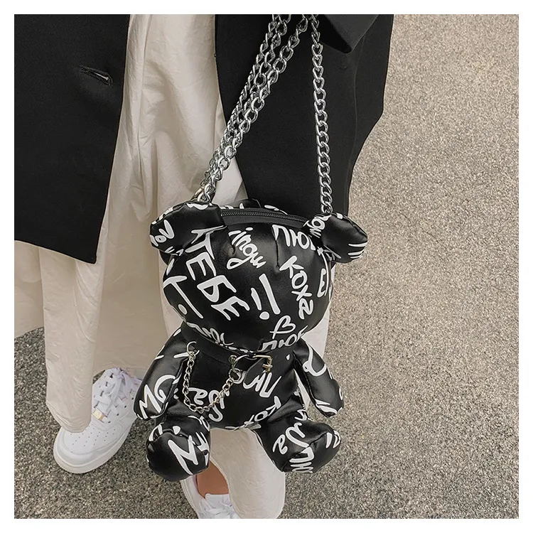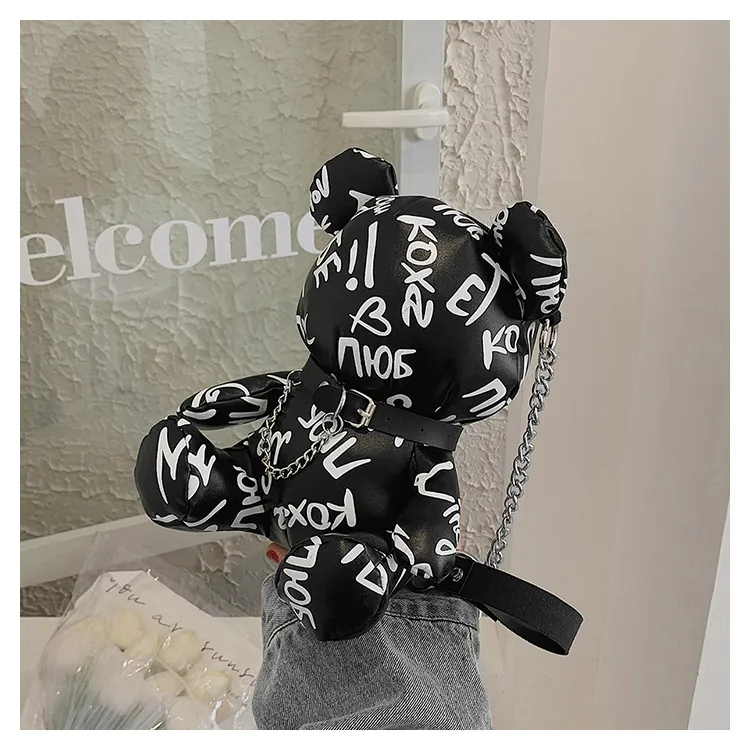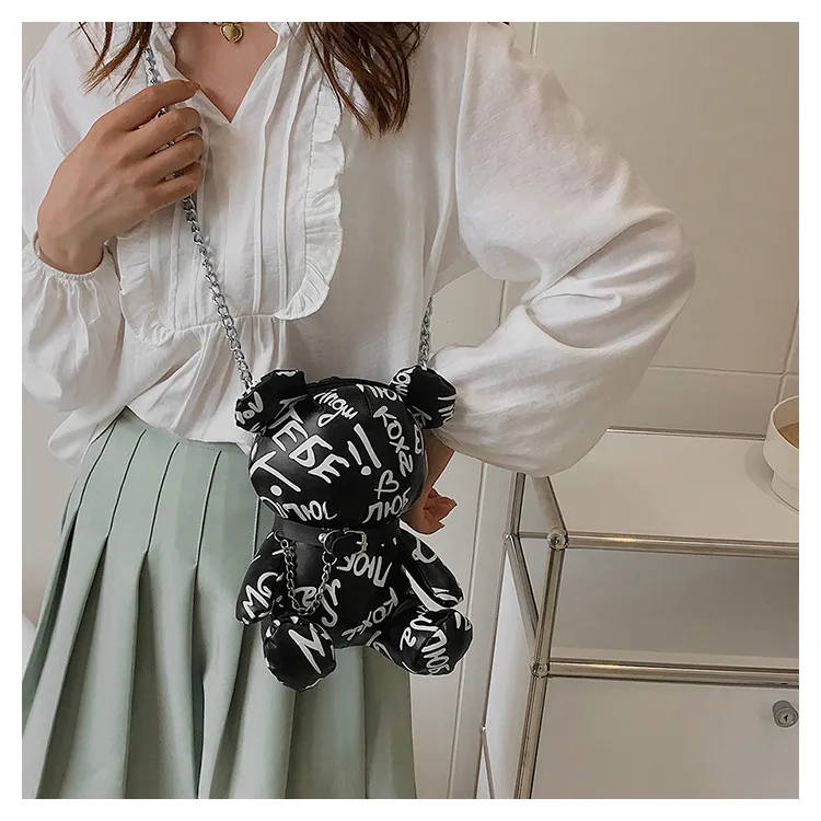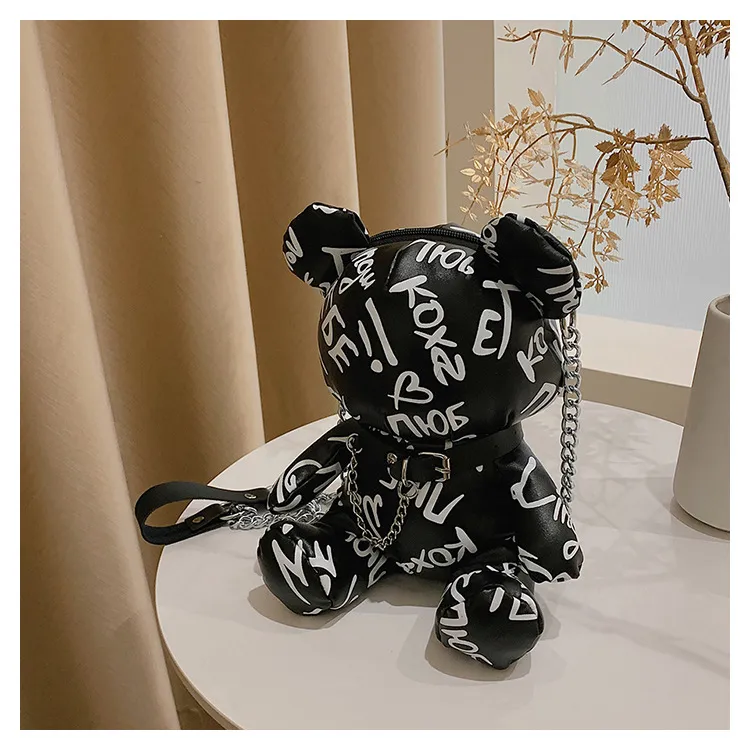 Bear Graffiti Bucket Bag Portable Shoulder Messenger Bag For Women