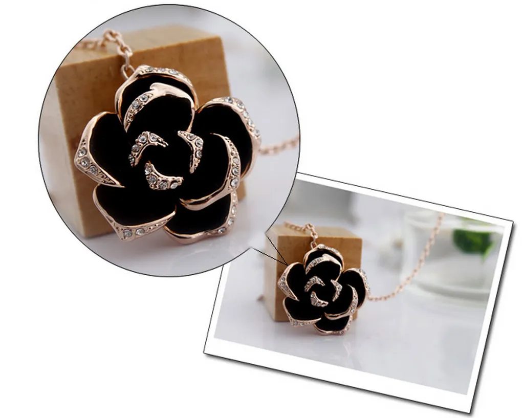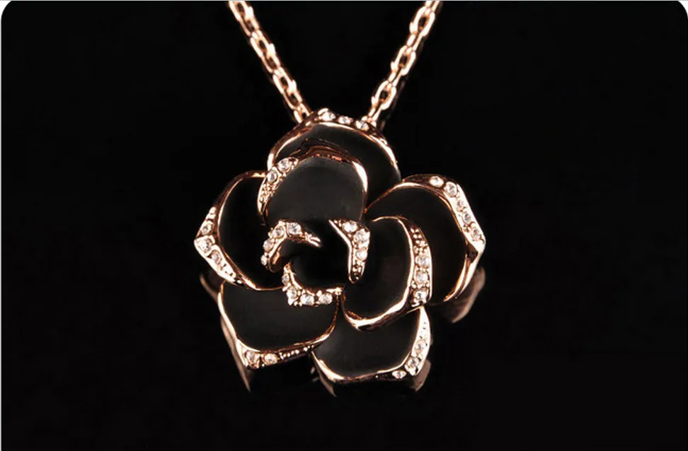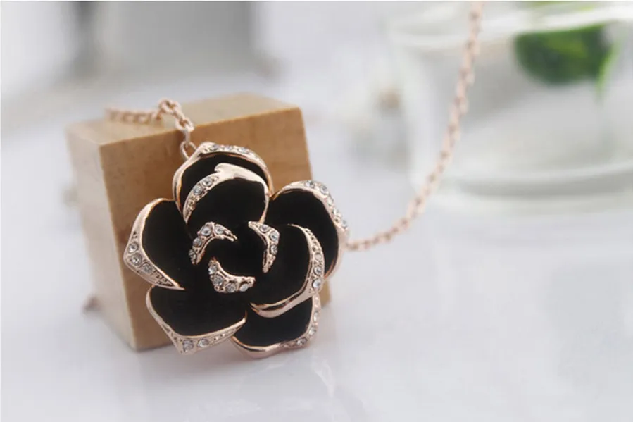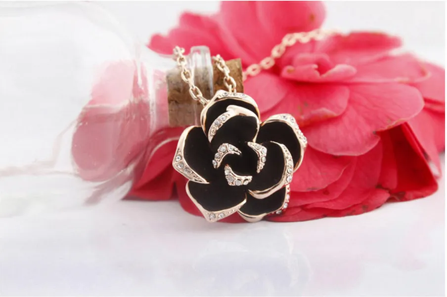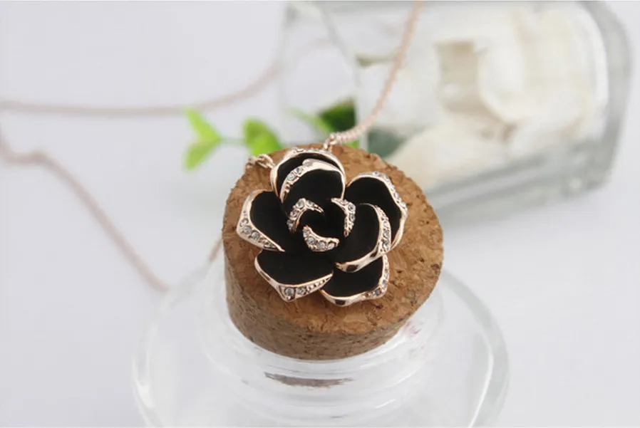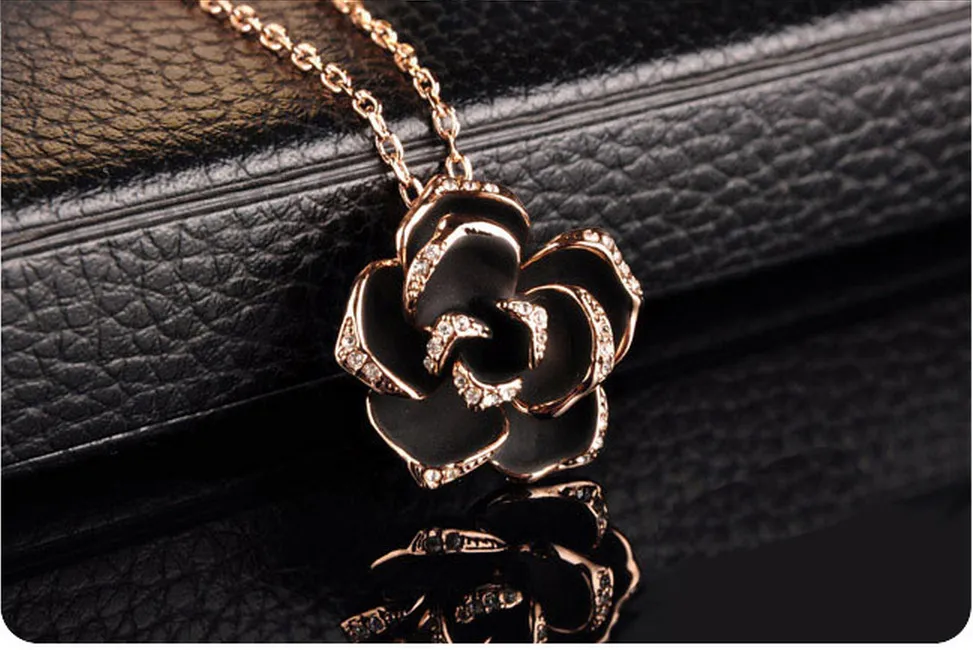 Beautiful black rose necklace pendant