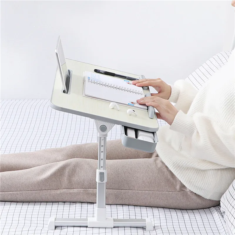 - Whether you're working from home or studying, this table provides a comfortable workstation that can be easily adjusted to fit your needs. With the ability to work from the comfort of your bed or couch, you can stay productive without sacrificing comfort.