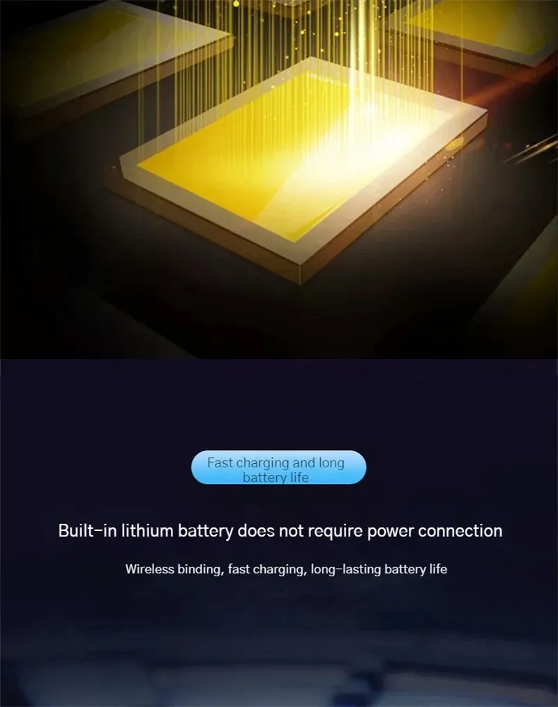 The built-in lithium battery does not need to be connected. Wireless binding, fast charging and long endurance